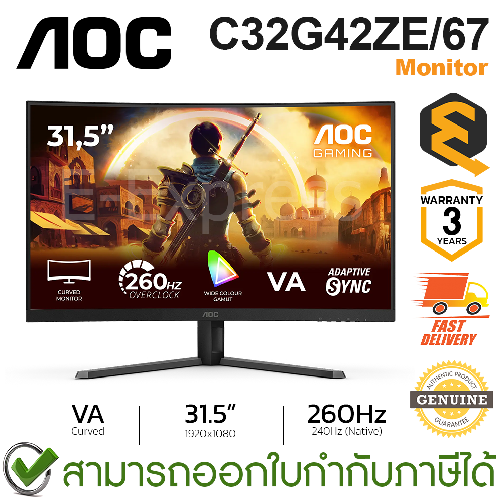 AOC Monitor 24G50Z/67 LED 23.8-Inch IPS 260Hz OC BK จอมอนิเตอร์ จอเกมมิ่ง ของแท้ ประกันศูนย์ 3ปี