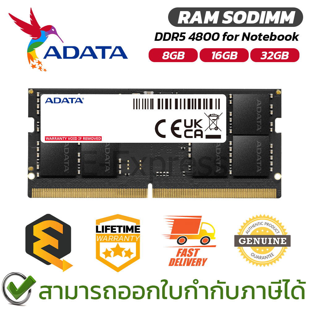 Adata RAM SODIMM DDR5 4800 [8GB, 16GB, 32GB] For Notebook แรมสำหรับโน้ตบุ๊ค ของแท้ ประกันศูนย์ตลอดอายุการใช้งาน