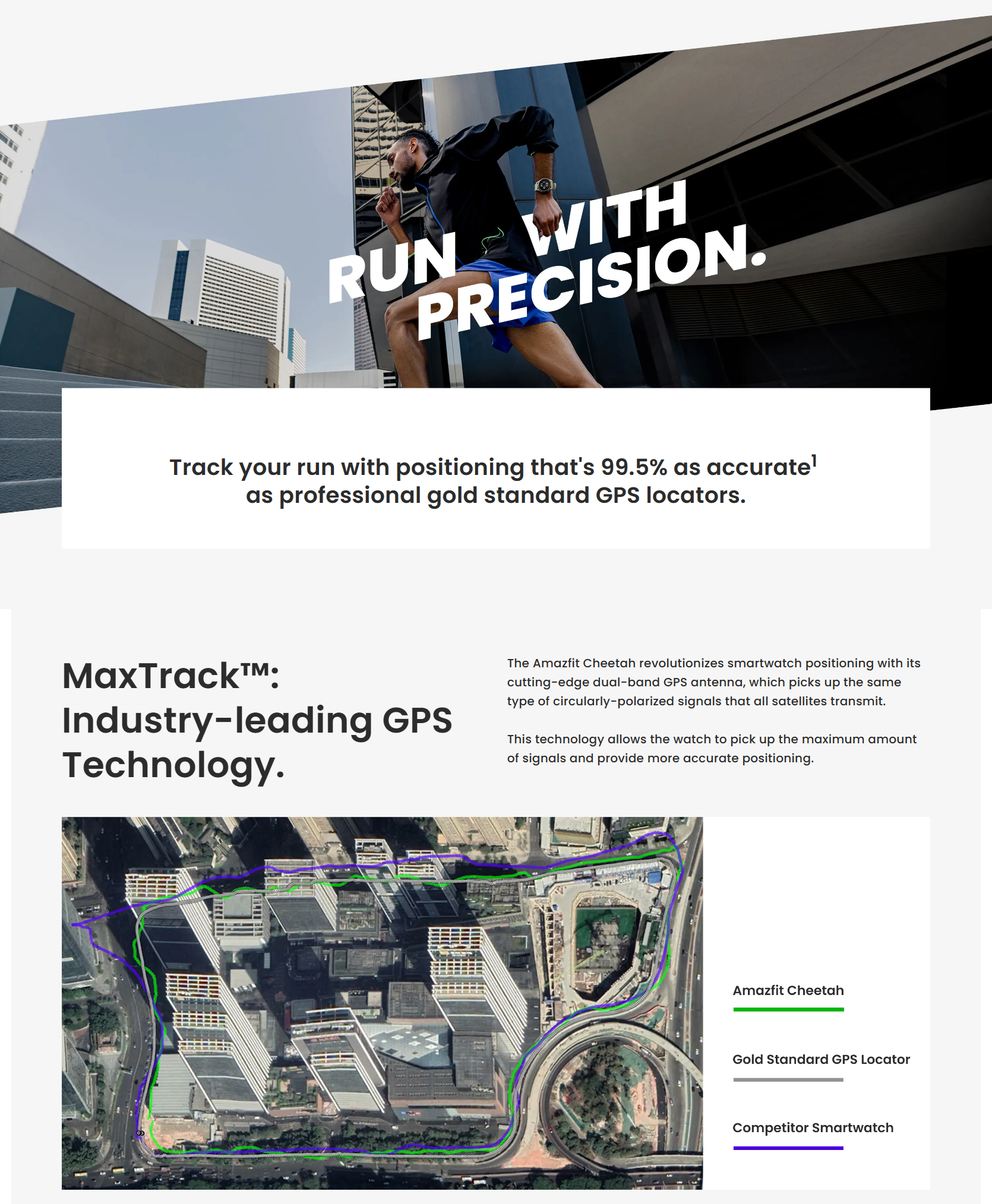 The Amazfit Cheetah revolutionizes smartwatch positioning with its cutting-edge dual-band GPS antenna, which picks up the same type of circularly-polarized signals that all satellites transmit.