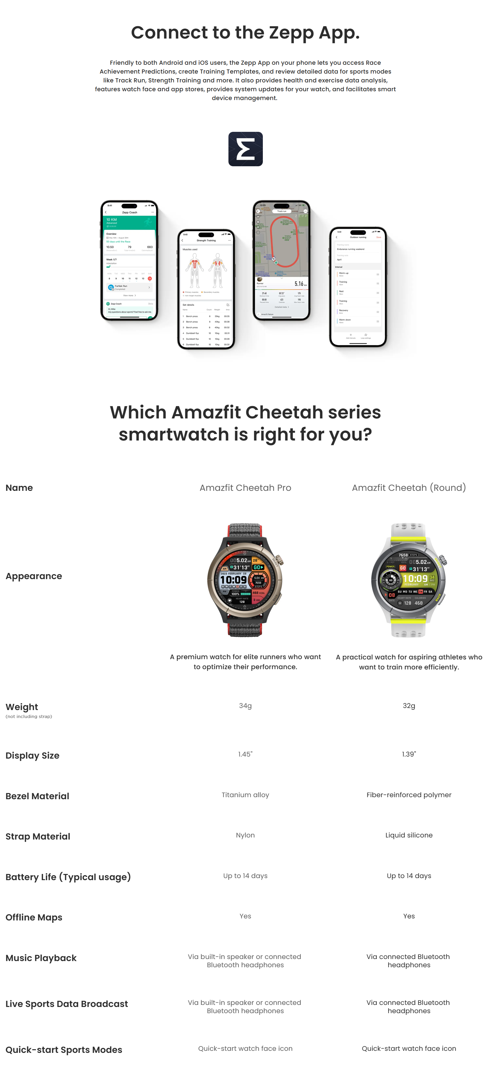 Upgraded for the Amazfit Cheetah, the Zepp Coach™ harnesses the power of AI to provide personalized running plans tailored to you and your goals.