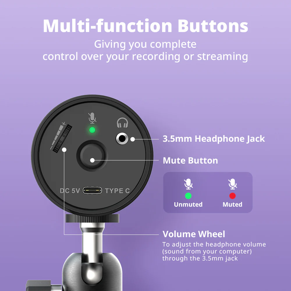 VERSATI go มอบสุดยอดแห่งความคมชัดของเสียง ที่มาพร้อมตัวเครื่องโลหะที่ทนทานและกะทัดรัด เหมาะสำหรับการทำพ็อดคาสต์ สตรีมมิ่ง การเล่นเกม หรือกิจกรรมออนไลน์ต่าง ๆ การเชื่อมต่อผ่าน USB Type-C ช่วยให้ตั้งค่าได้อย่างง่ายดาย ทำให้คุณสามารถโฟกัสไปที่การสร้างเสียงที่ดีที่สุดของคุณ