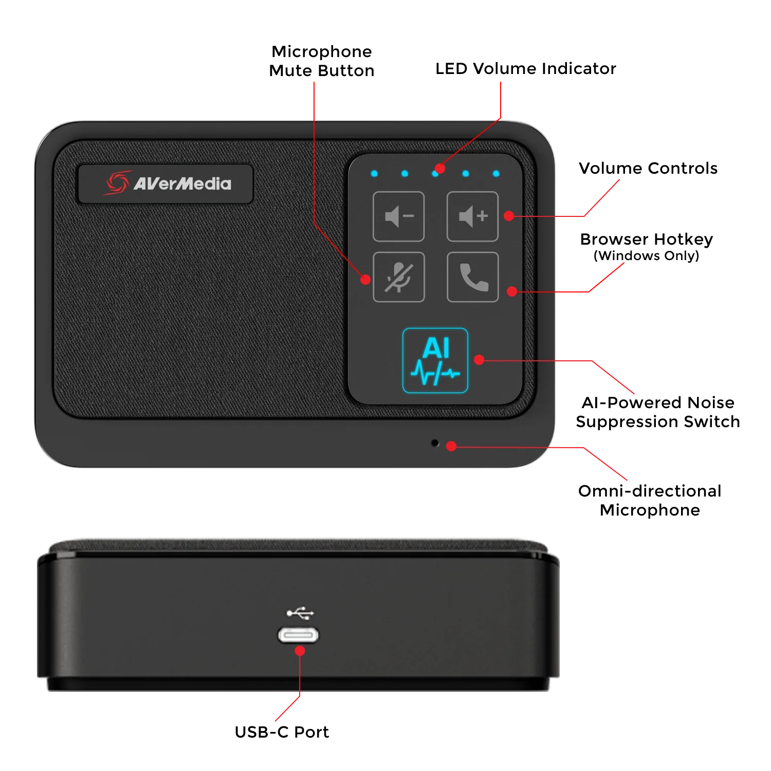 AVerMedia Pocket Speakerphone AS315 works perfectly with Zoom Rooms, Skype, Teams, and most of the third-party platforms for excellent and stable communicating experience.