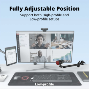ไม่ว่าคุณจะสตรีม บันทึกเสียง หรือเข้าร่วมการประชุมผ่านวิดีโอ FLEXI go สามารถปรับให้เหมาะสมกับการทำงานของคุณได้ทั้งการตั้งค่าสูงและต่ำ ช่วยให้คุณปรับตำแหน่งไมโครโฟนให้อยู่ในตำแหน่งที่เหมาะสมที่สุดสำหรับการบันทึกเสียง ทำให้การตั้งค่าของคุณยืดหยุ่นเมื่อเปลี่ยนงาน