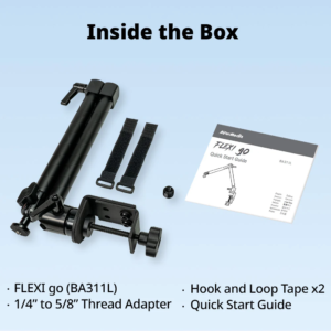 ด้วยขนาดเกลียวมาตรฐาน FLEXI go รองรับมากกว่าการติดตั้งไมโครโฟน คุณสามารถติดตั้งกล้อง โทรศัพท์ แท็บเล็ต* หรือไฟขนาดเล็ก** ปรับให้เข้ากับการตั้งค่าต่าง ๆ ตั้งแต่การสตรีม การถ่ายภาพมุมสูง ไปจนถึงความบันเทิงแบบแฮนด์ฟรี
