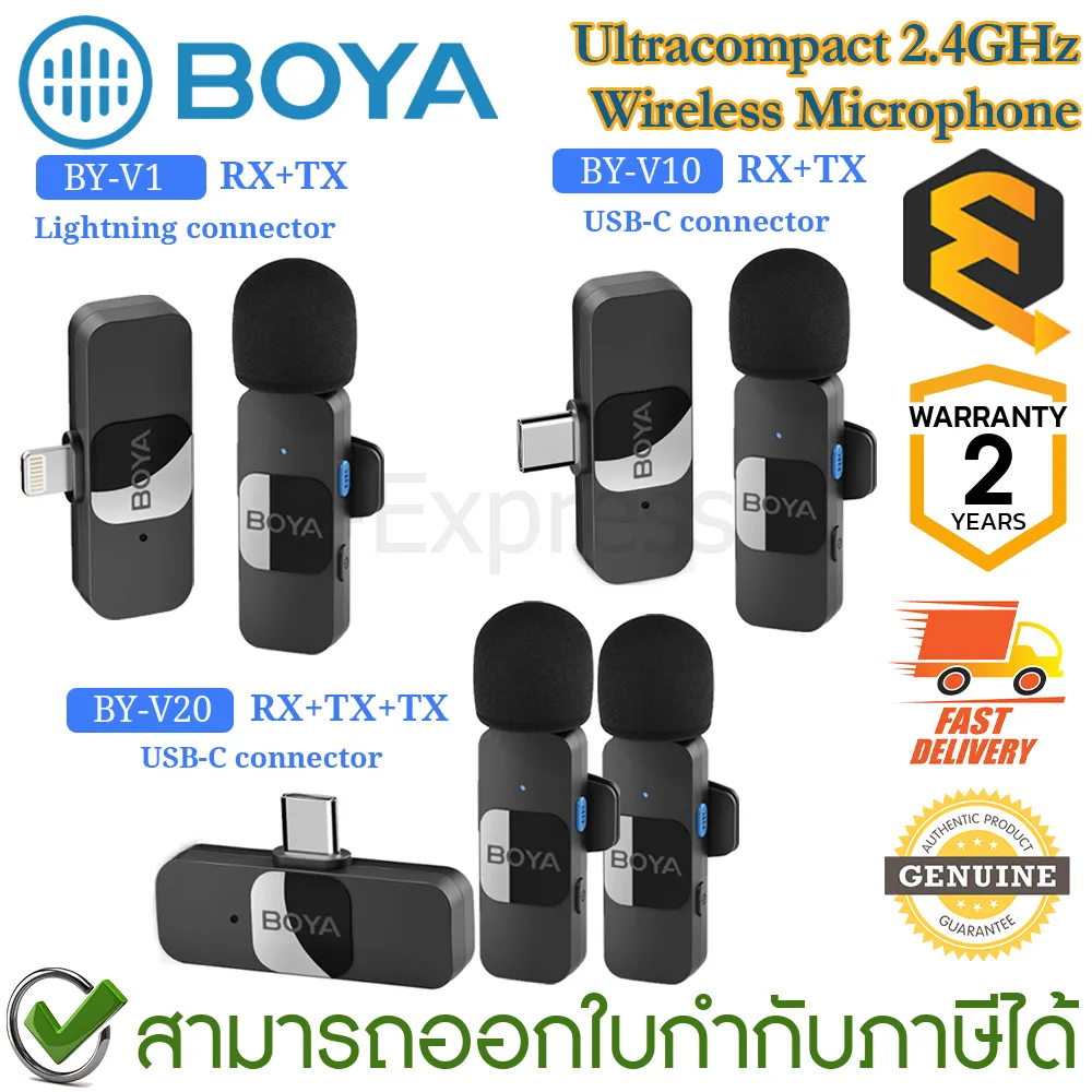 ✨✨Boya Ultracompact 2.4GHz Wireless Microphone V1,V10,V20 ไมโครโฟนไร้สาย ของแท้✨✨