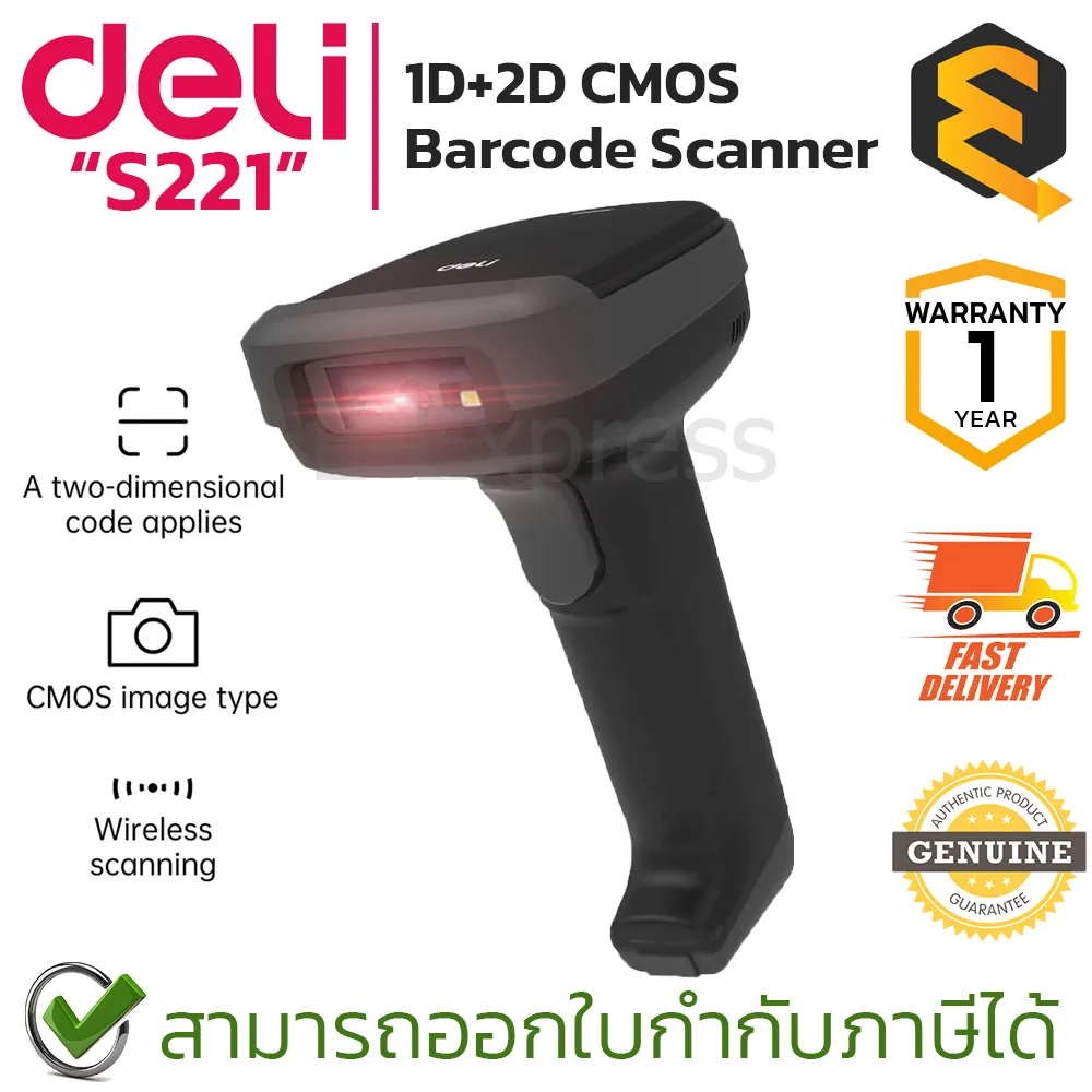 ✨✨Deli S221 1D+2D CMOS Barcode Scanner เครื่องสแกนบาร์โค้ดแบบไร้สาย ของแท้✨✨