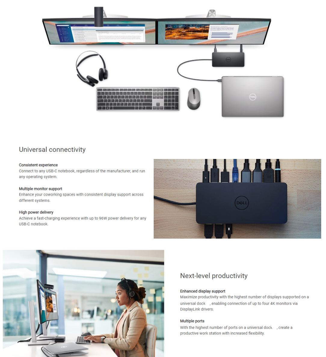 Maximize productivity with the highest number of displays supported on a universal dock, enabling connection of up to four 4K monitors via DisplayLink drivers.