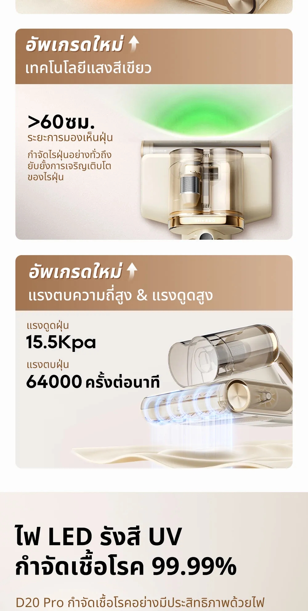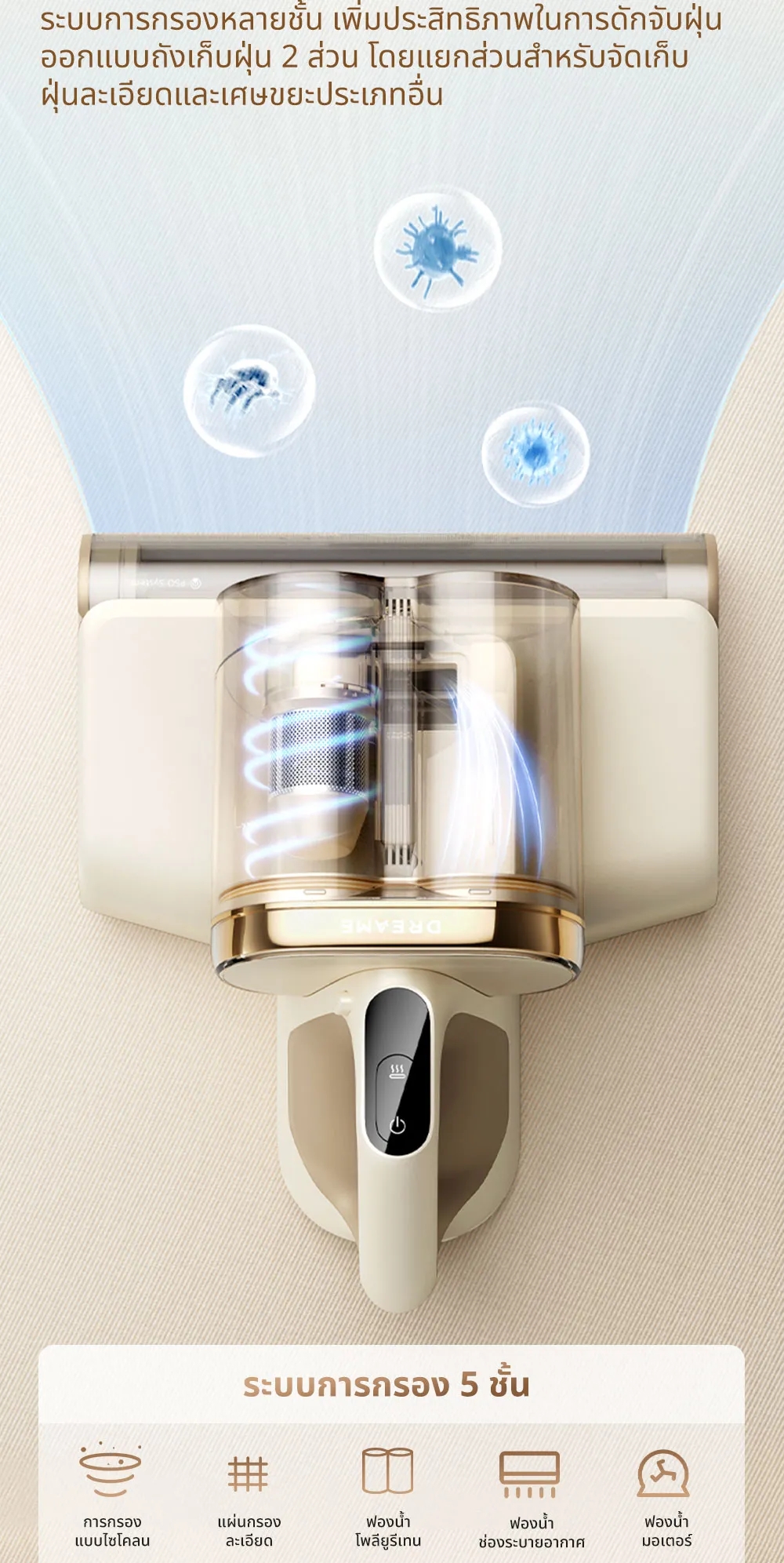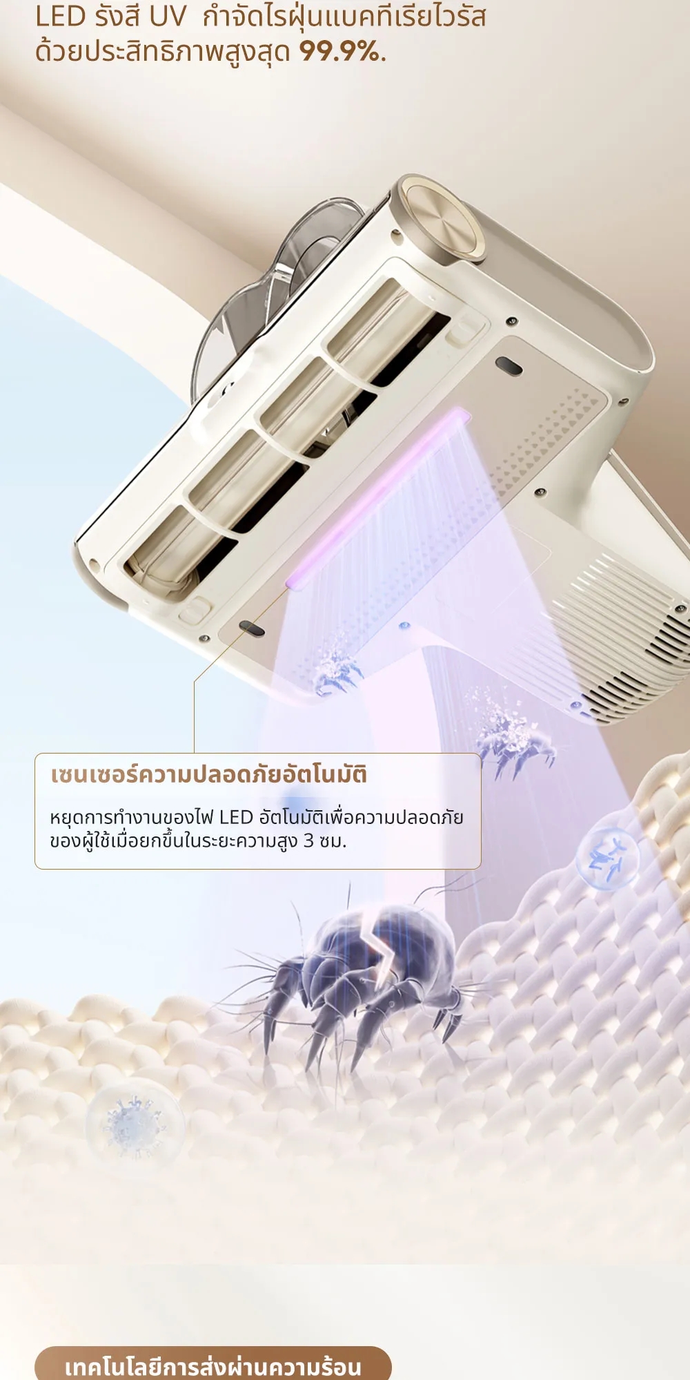 ✅ มีรังสี UV ซ่าเชื้อโรคและกำจัดไรฝุ่นได้ถึง 99.9%