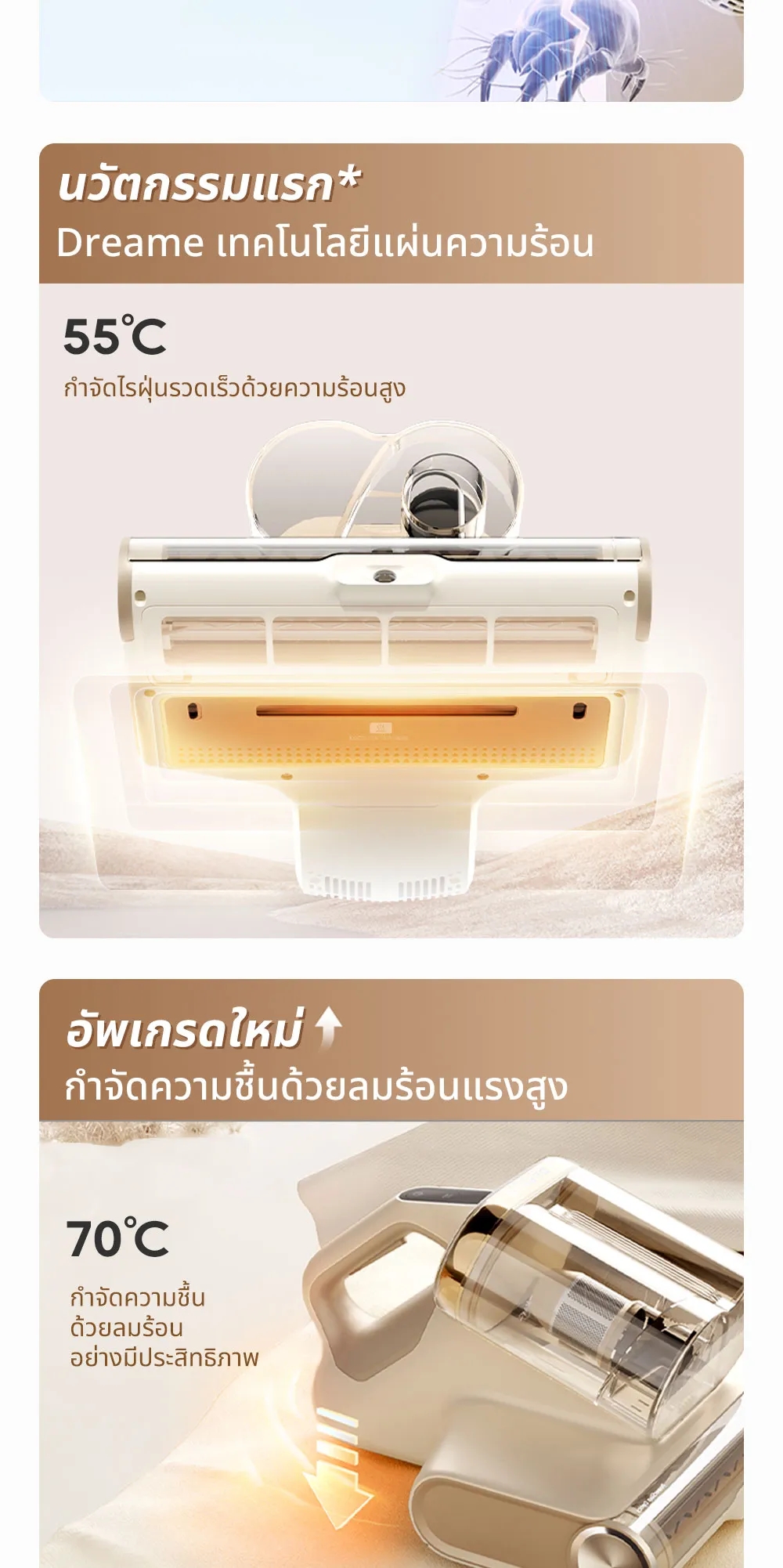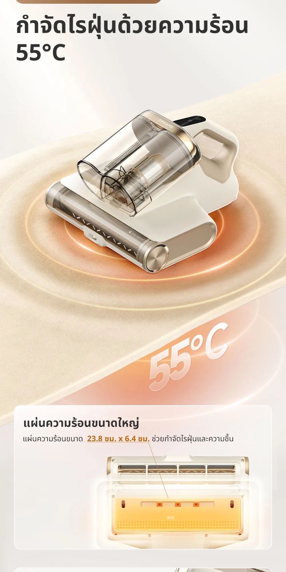 ✅ มีเทคโนโลยีแผ่นความร้อนอุณหภูมิ 55°C ช่วยกำจัดไรฝุ่น