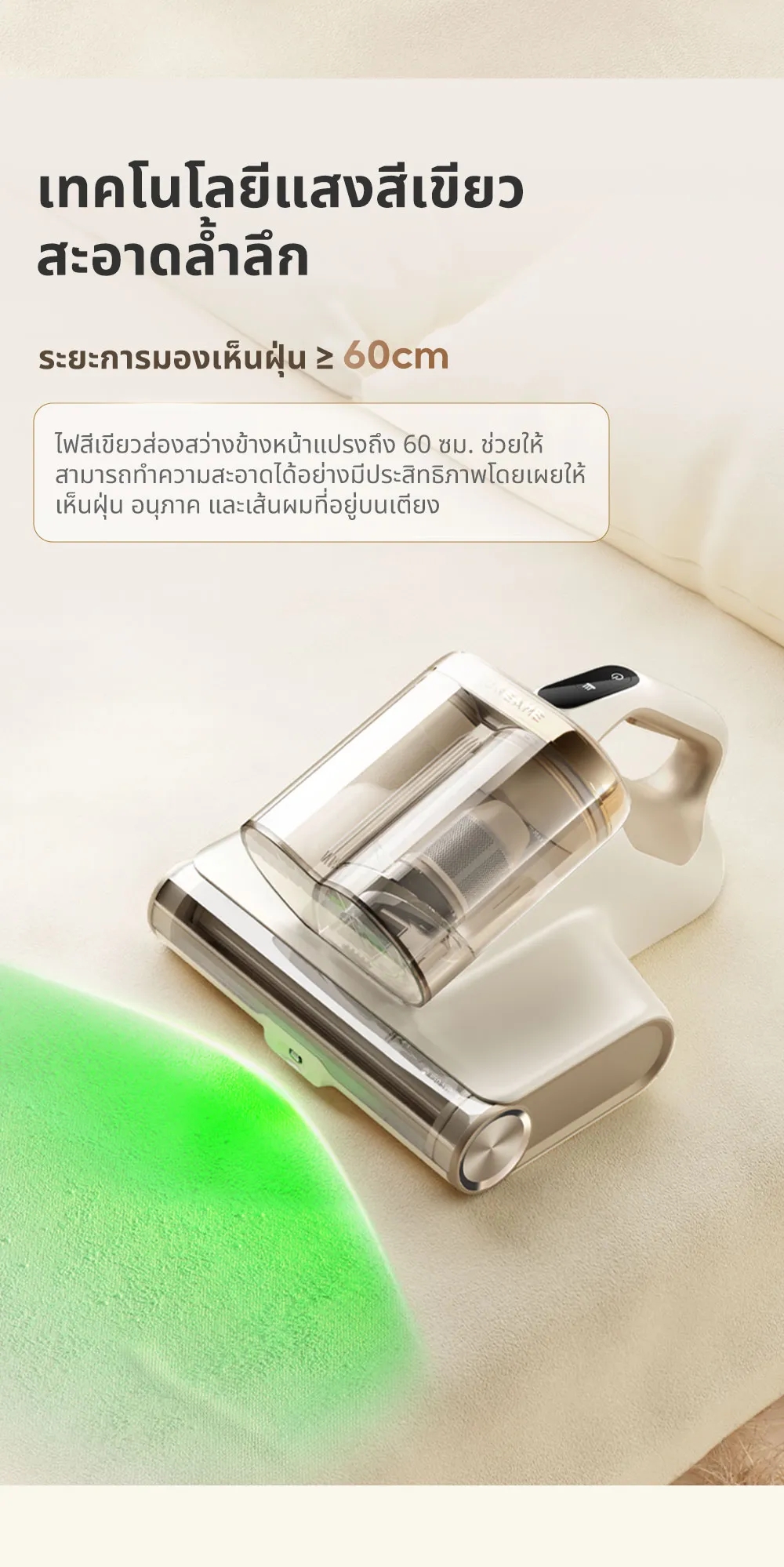 ✅ มีเทคโนโลยีแสงสีเขียว ช่วยให้เห็นฝุ่นได้ชัดเจนยิ่งขึ้น