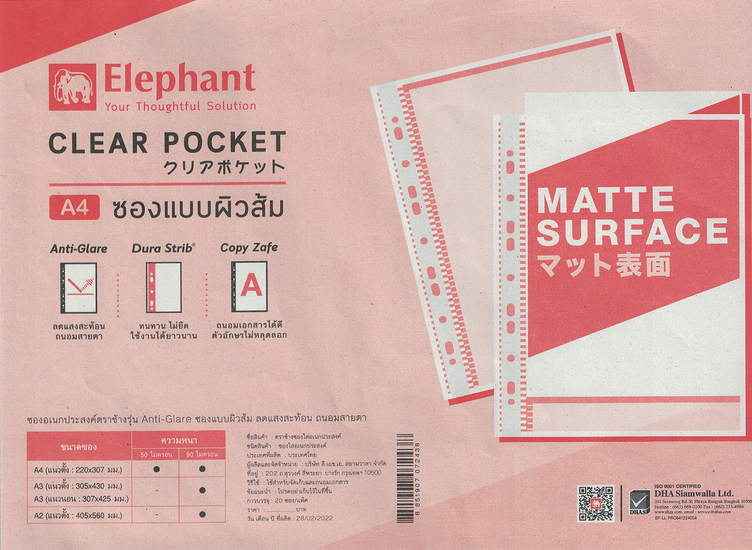 – ผลิตจากพลาสติก PP หนา 50 ไมครอน สวยงามกว่าด้วยพื้นผิว Embossing ลายผิวส้ม