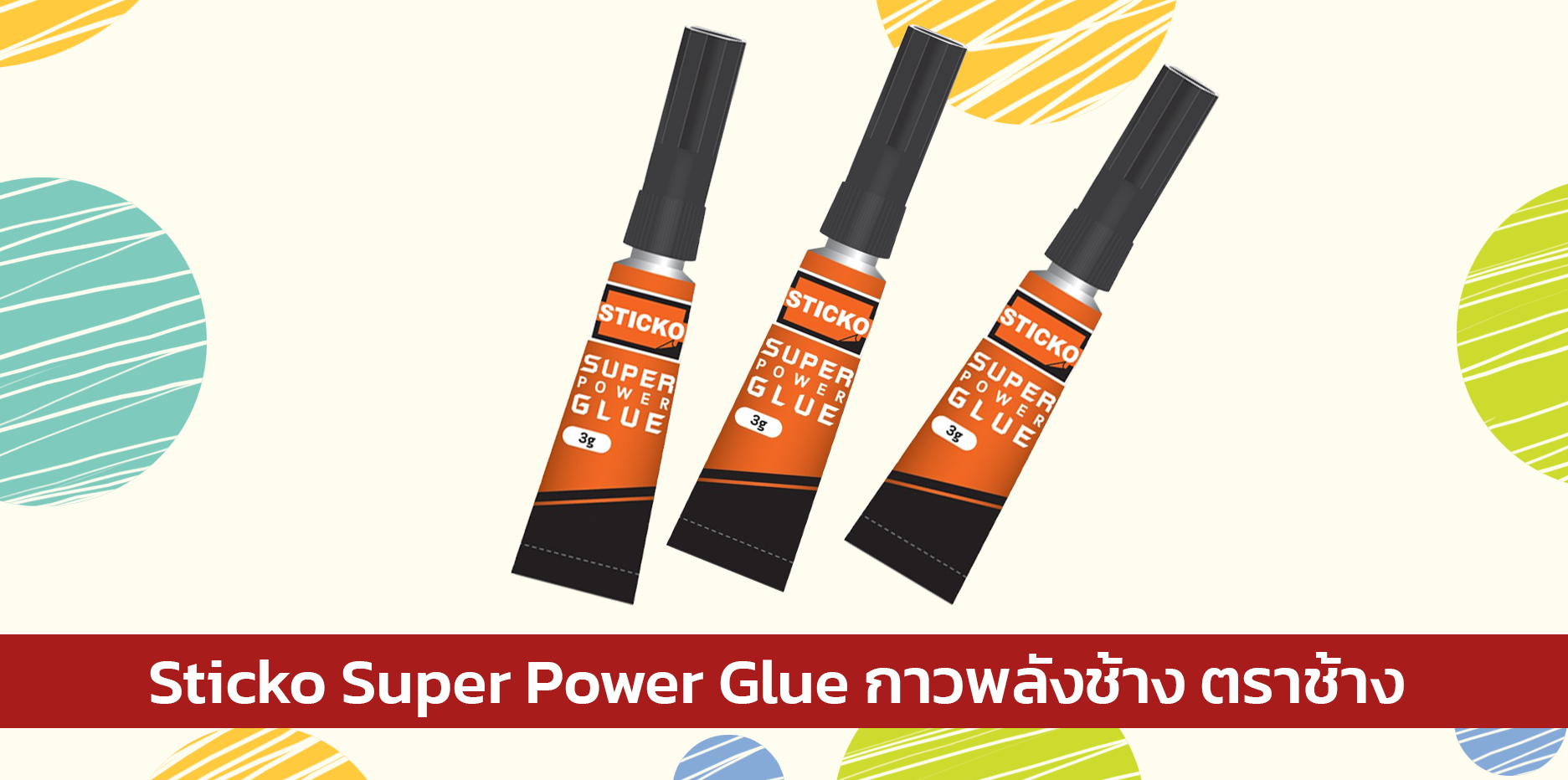กาววิทยาศาสตร์STICKO 3G. จาก ตราช้าง กาวซุปเปอร์กูล เนื้อกาวคุณภาพ แห้งเร็วสุดยอด ติดแน่นทนนาน มาพร้อมกับฝาเกลียวล็อคสองชั้น ปิดสนิท ป้องกันการไหลเปื้อนบริเวณปาก การใช้งานก็ทำได้ง่ายเพียงแค่หมุนโดยไม่ต้องใช้เข็มเจาะเวลาใช้ครั้งแรก รวมทั้งมีเหล็กในใต้ฝาลดปัญหาแห้งคาปล่อยหลอด สามารถเก็บไว้ใช้ได้หลายครั้งจนหมดหลอด กาวรุ่นนี้เป็นกาวที่สามารถใช้ได้กับงานหลายหลากพื้นผิว ไม่ว่าจะเป็น โลหะ พลาสติก ยาง หนัง เซรามิค ไม้ กระเบื้อง ซึ่งสามารถติดได้อย่างทนนาน