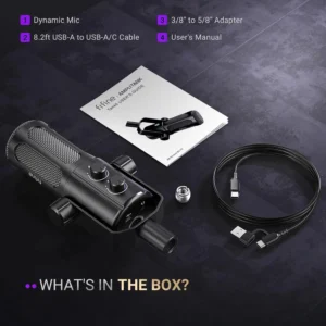 🔹 Output Connection : 3-pin XLR, USB type-C (mic end) to type-A 2.0 (computer end)
