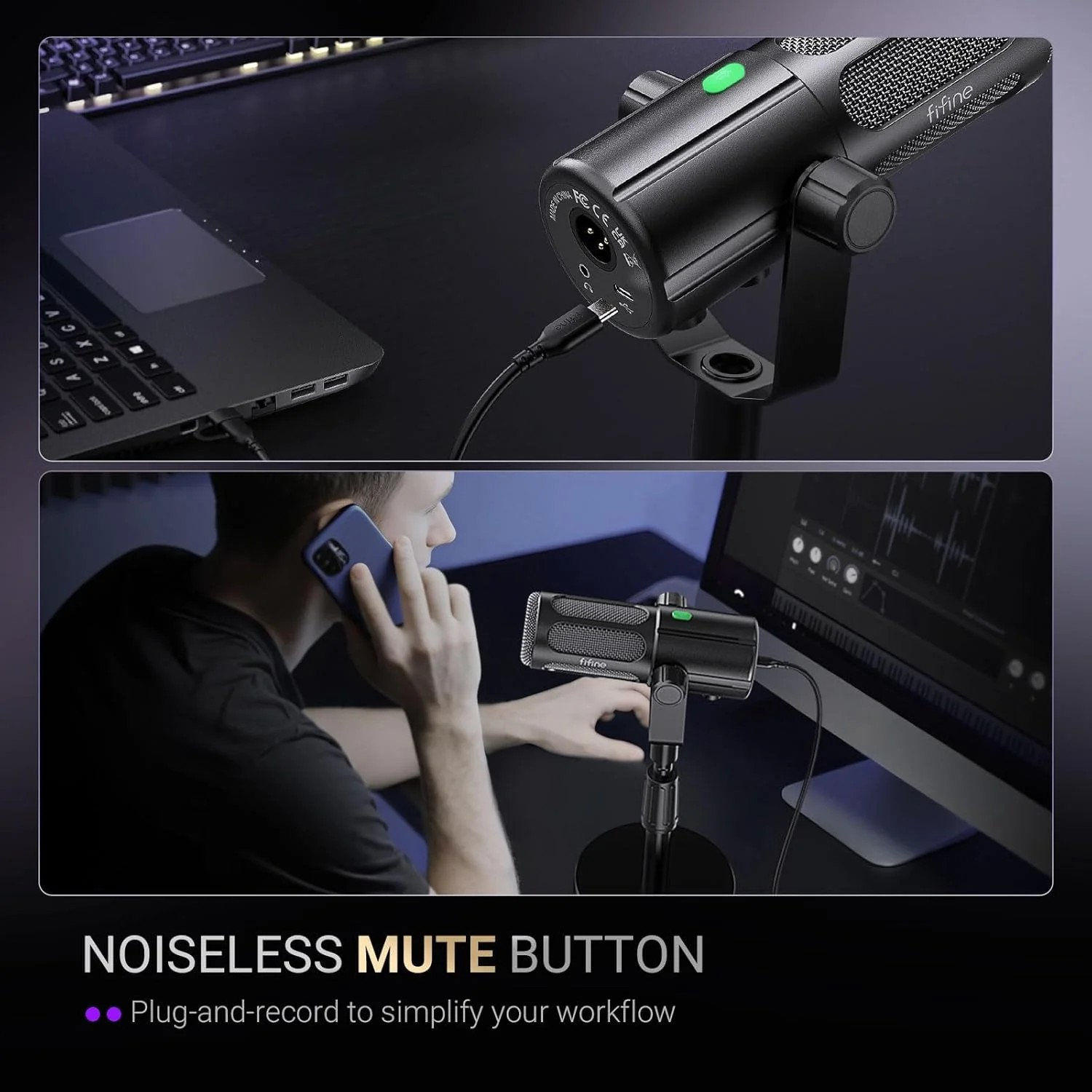 ✅ การเชื่อมต่อ: USB Type-C (ที่ไมโครโฟน) ไปยัง Type-A 2.0 (ที่คอมพิวเตอร์) และ XLR