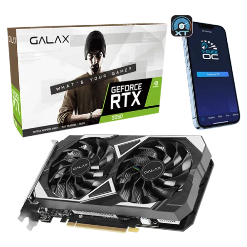 While the all-new GALAX GeForce RTX™ 3050 EX aims at performance, the already factory overclocked graphics card can even achieve a higher boost clock to reach the maximum speed of 1485MHz through the GALAX’s unique 1-Click OC option within the software of Xtreme Tuner Plus