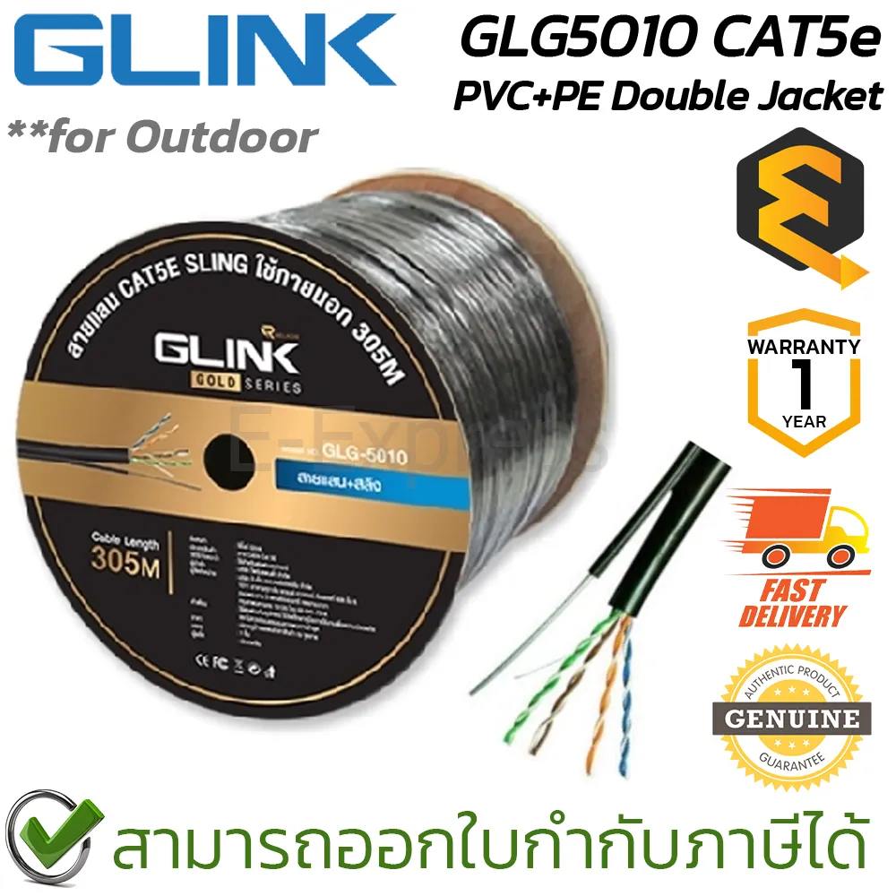 ✨✨Glink GLG5010 CAT5e PVC+PE Double Jacket for Outdoor สายแลนภายนอกแบบมีสลิง ของแท้✨✨