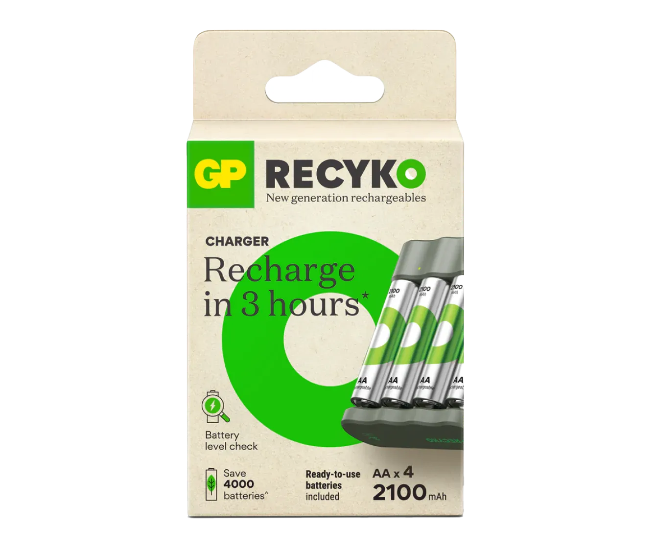GP Recyko is also safe and easy to use. With a charge time of just 3 hours with auto cut off, you simply switch depleted batteries for full ones in the charger, and you’re never out.