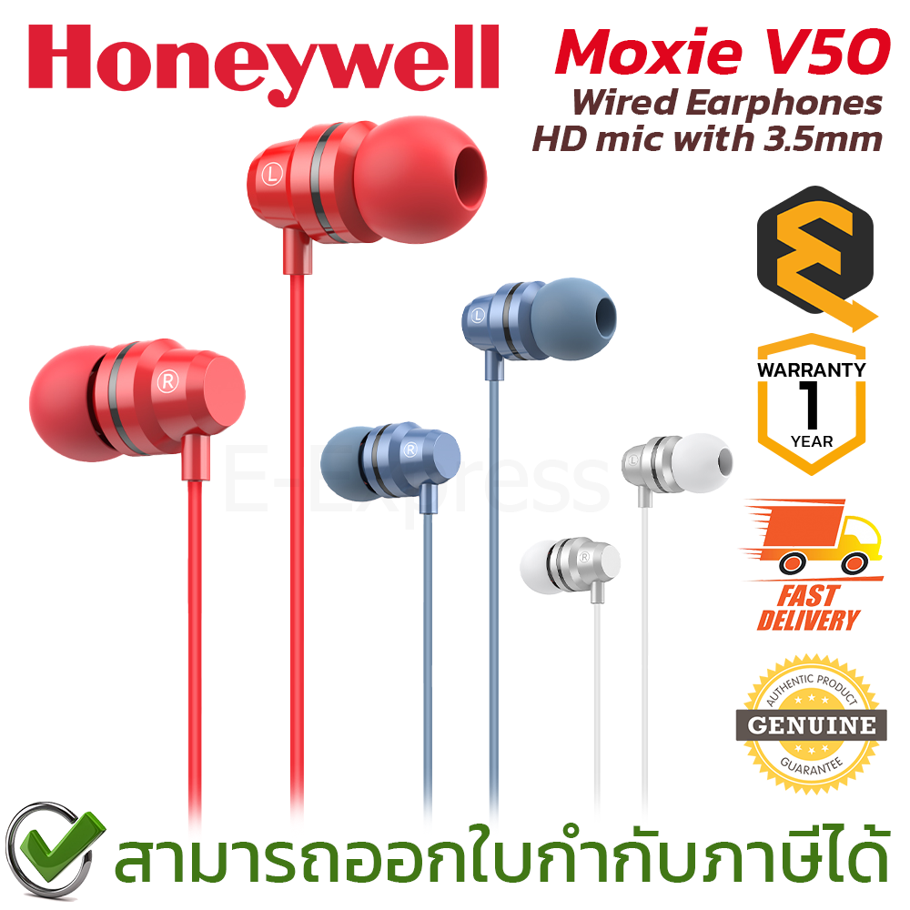 Honeywell Moxie V50 Wired Earphones 3.5mm [White, Blue, Red] หูฟังมีสาย ของแท้ ประกันศูนย์ 1ปี