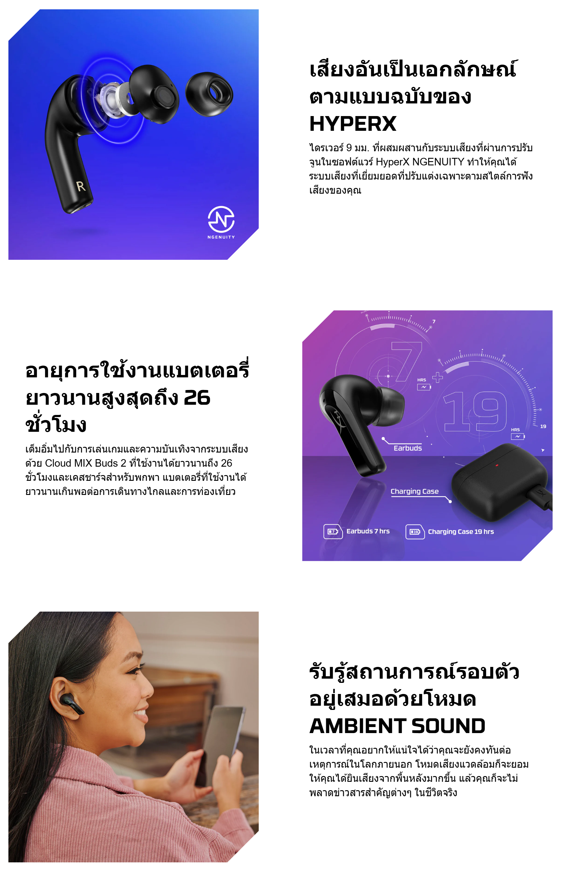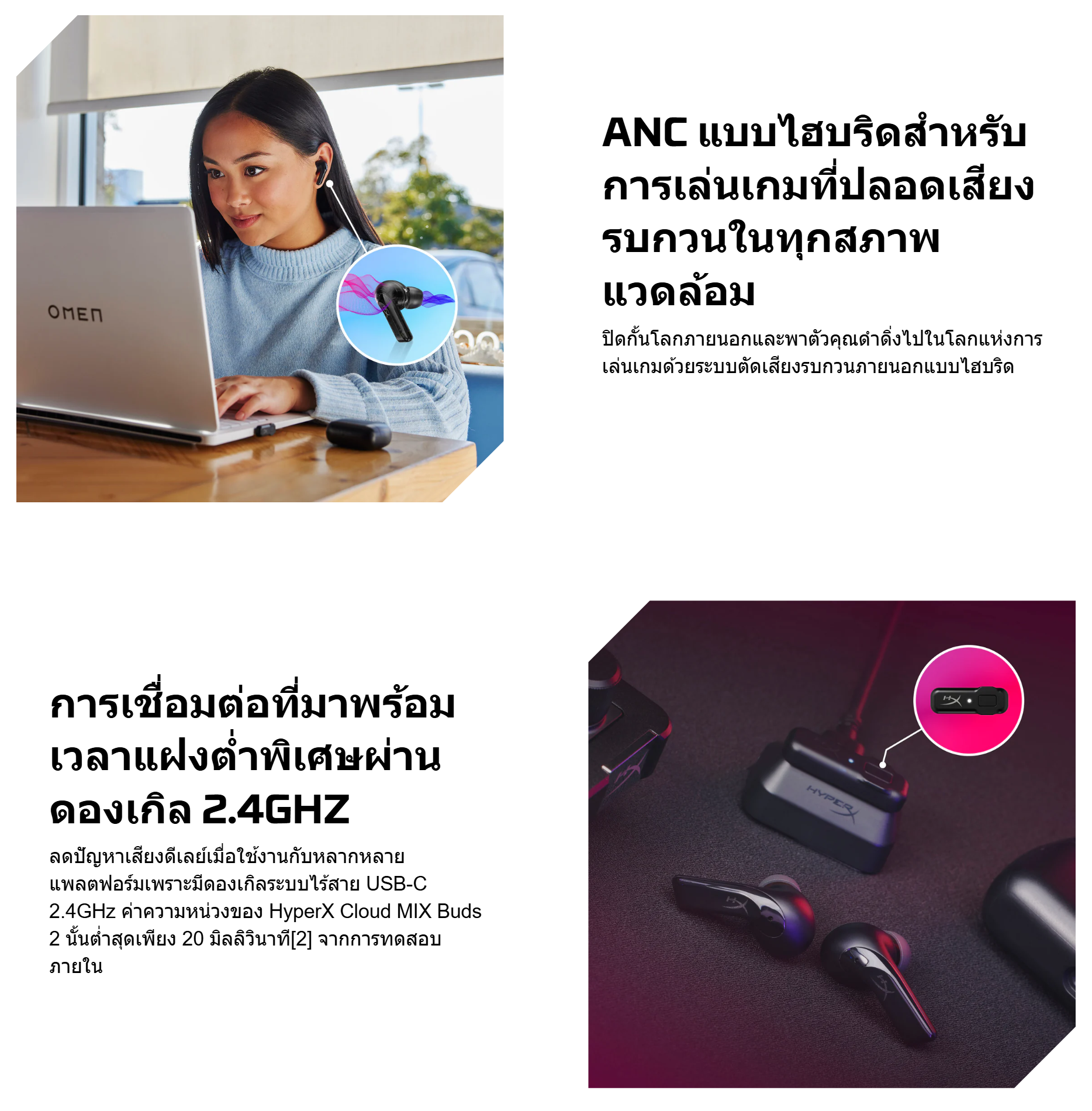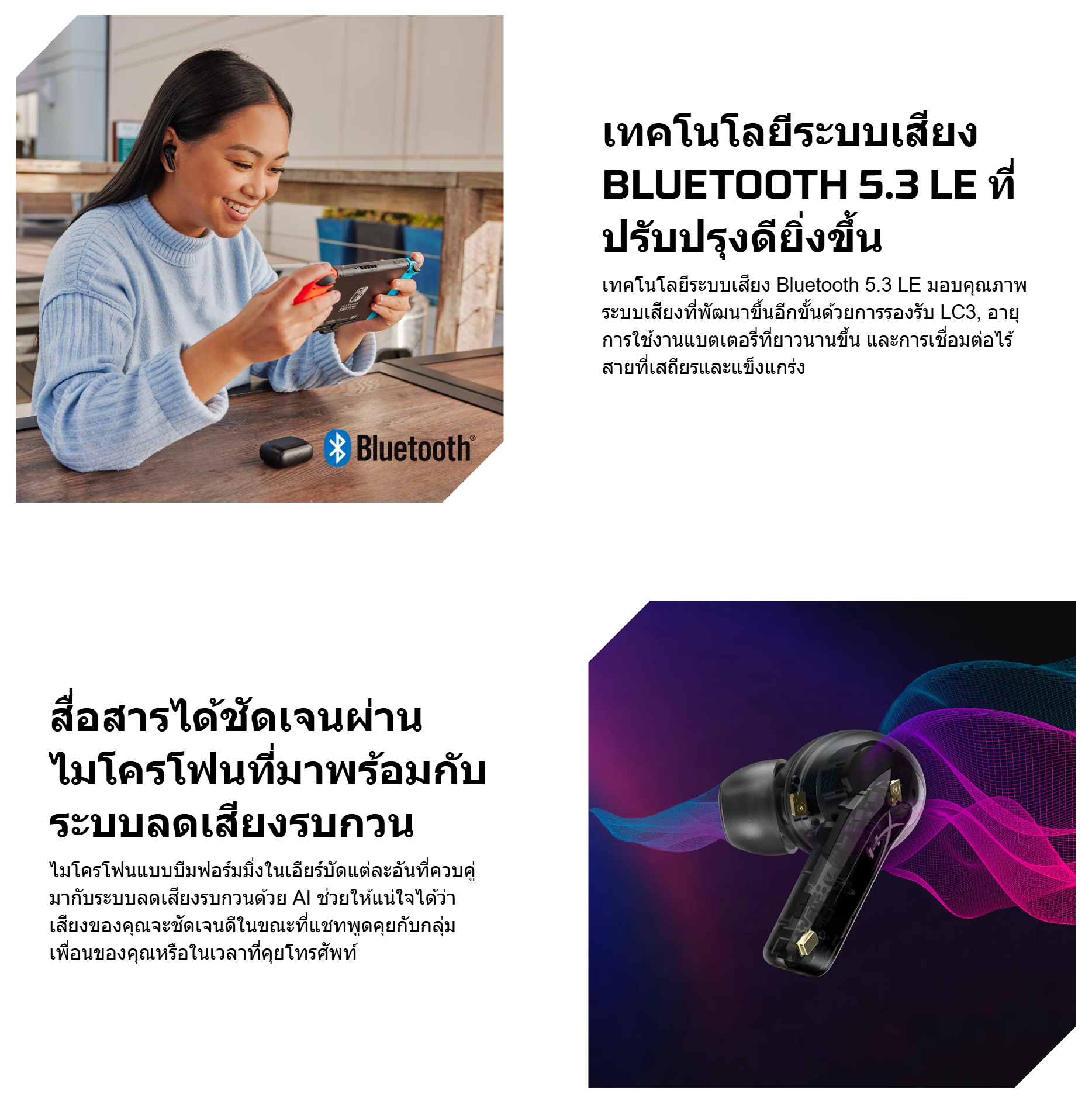 ✅ เทคโนโลยีระบบตัดเสียงรบกวนภายนอกแบบไฮบริด