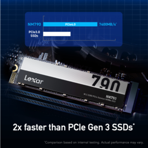 At 2x as fast as PCIe Gen3 SSDs2, the Lexar® NM790 M.2 2280 PCIe Gen 4×4 NVMe SSD helps you perform at your best, fast.