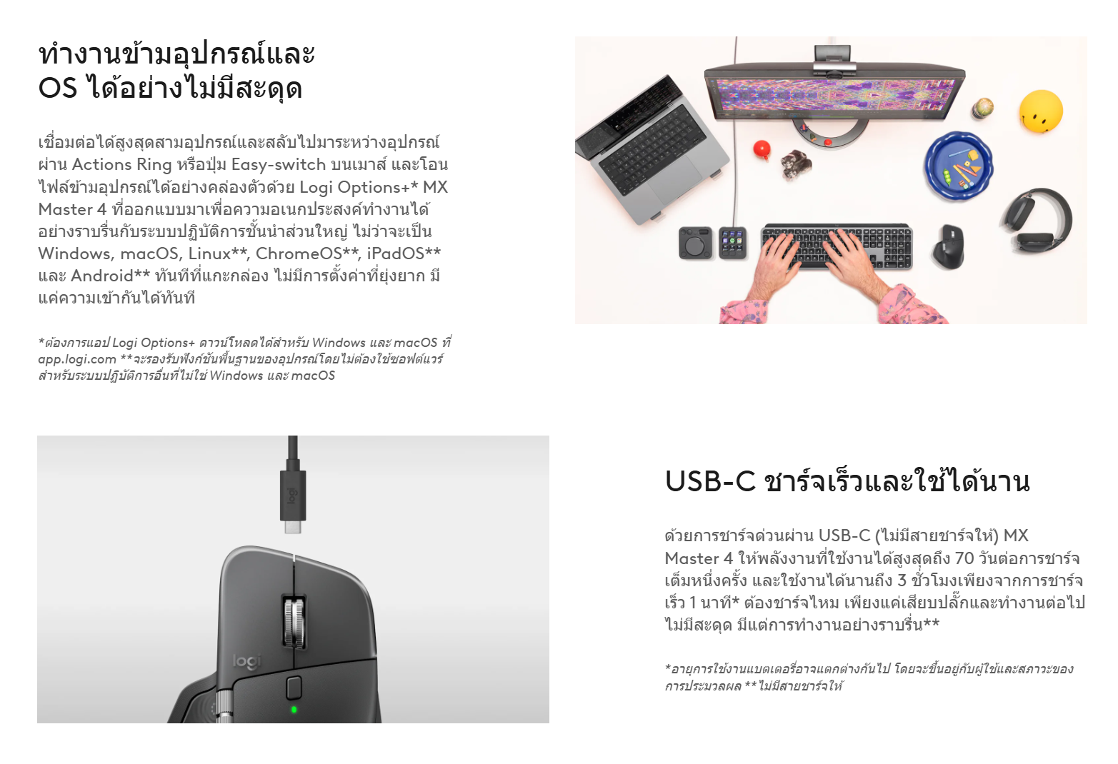 🔻 Bluetooth: จำเป็น: Bluetooth Low Energy, Windows 11 หรือใหม่กว่า*, macOS 13 หรือใหม่กว่า*, Linux**, ChromeOS**, iPadOS 15 หรือใหม่กว่า**, Android 12 หรือใหม่กว่า** (*ปรับแต่งอุปกรณ์โดยการติดตั้งแอป Logi Options+ พร้อมใช้งานสำหรับ Windows และ macOS เวอร์ชันล่าสุดที่ app.logi.com **รองรับฟังก์ชันพื้นฐานของอุปกรณ์โดยไม่ต้องใช้ซอฟต์แวร์สำหรับระบบอื่นนอกเหนือจาก Windows และ macOS)