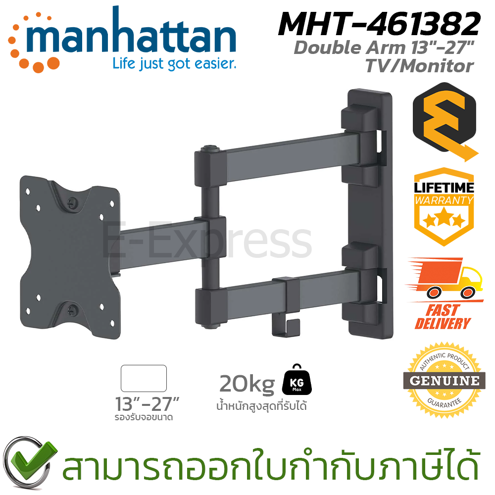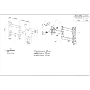 Overcome an odd floor plan, annoying glare or awkward furniture placement that can limit your flat-panel TV experience. The Manhattan Universal Flat-Panel TV Articulating Wall Mount folds nearly flat against the wall and safely extends on a strong, double-arm frame that helps you achieve prime viewing positions from almost anywhere in the room. VESA-compliant and constructed of quality materials, this articulating wall mount fits a range of display sizes for a secure and confident above-the-floor TV installation. It’s the perfect fit for mounting a TV in your living room, bedroom or den, as well as for commercial uses in hotels, classrooms, conference rooms, for digital signage and more. The Manhattan Universal Flat-Panel TV Articulating Wall Mount brings your TV enjoyment front and center.