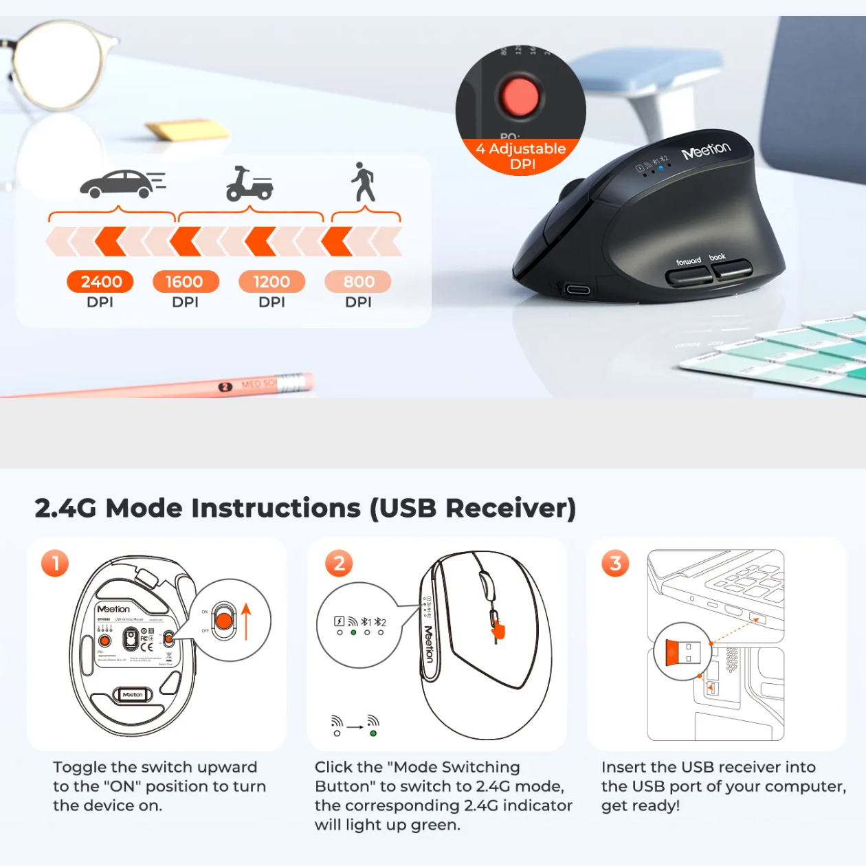 💠 Feature – Right-handed Wireless Ergonomic Vertical Design