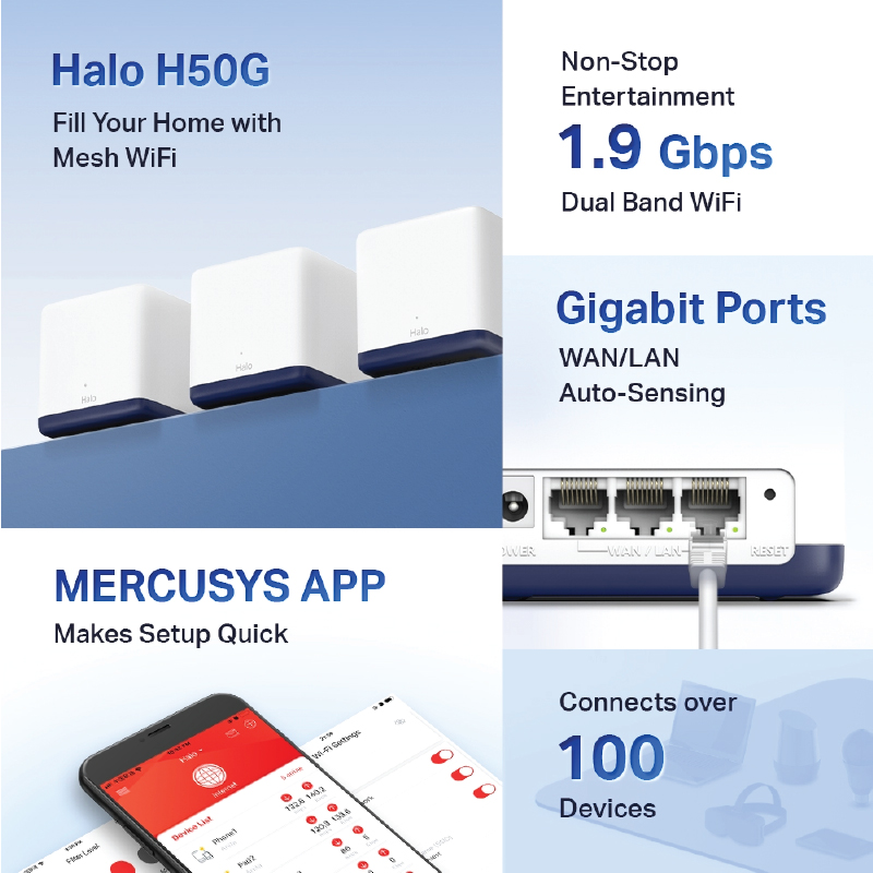 - มาพร้อมพอร์ต 3× Gigabit ต่อ Halo 1 ตัว ได้รับอินเทอร์เน็ตเต็มสปีดบนการทำงานแบบมีสาย