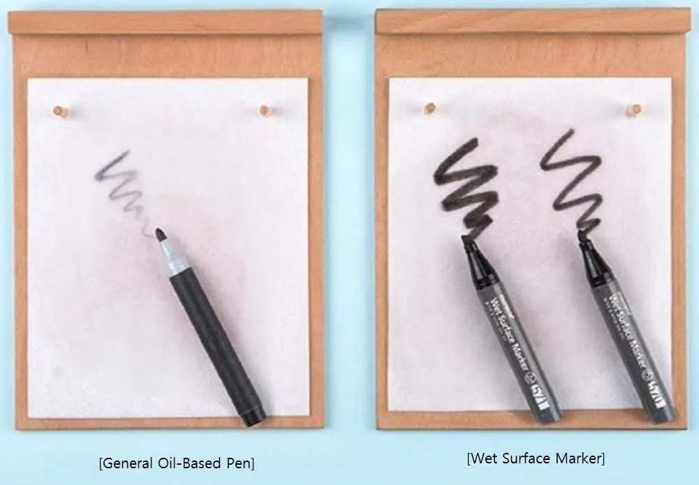 - ทนน้ำ และสามารถเขียนติดได้แม้พื้นผิวมัน