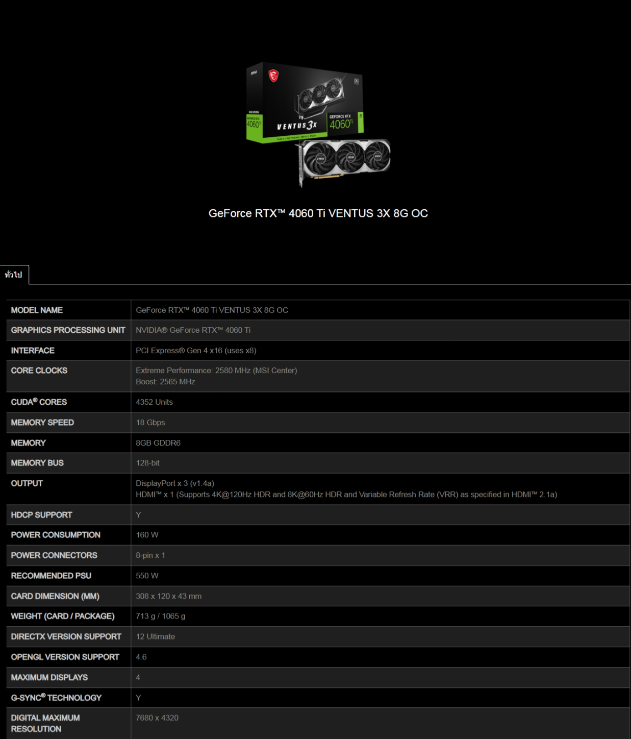 🚩MODEL NAME : GeForce RTX™ 4060 Ti VENTUS 3X 8G OC