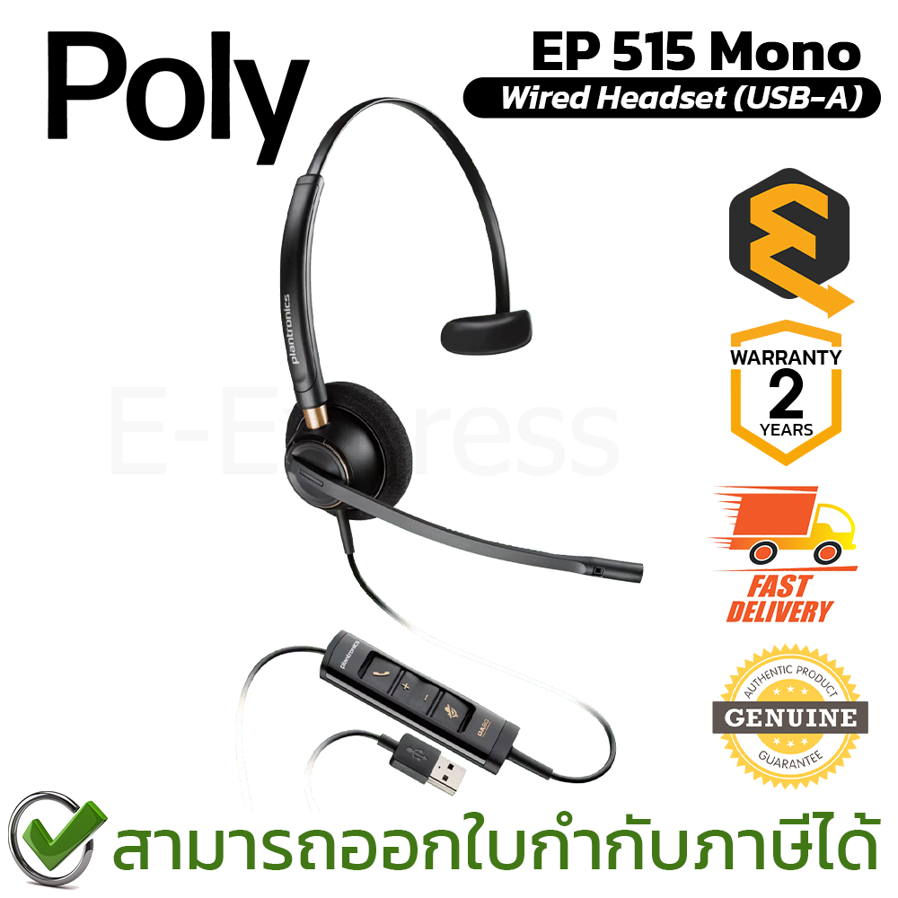 Poly EP 515 -M Mono w/USB-A Headset หูฟังพร้อมไมโครโฟน มีสาย ของแท้ ประกันศูนย์ 2ปี
