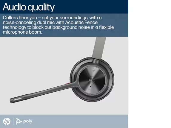 Move freely between all your workspaces with this portable headset. Roam with ease with up to 50 m / 164 ft of wireless range. Reduce background noise and control your conversations with Acoustic Fence technology.