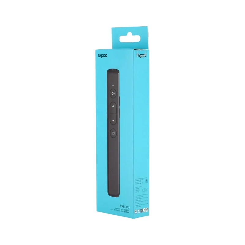 The Rapoo XR100 Smart Flip Pen Presenter features a 3R red laser, which is the safest type of laser pointer available. It emits a low-power beam of light that is not harmful to the eyes, even if it is accidentally shined in someone’s face. The 3R red laser is also very clear and bright, making it easy to see even in large rooms or in well-lit conditions. This makes it ideal for use in presentations, lectures, and other public speaking engagements.