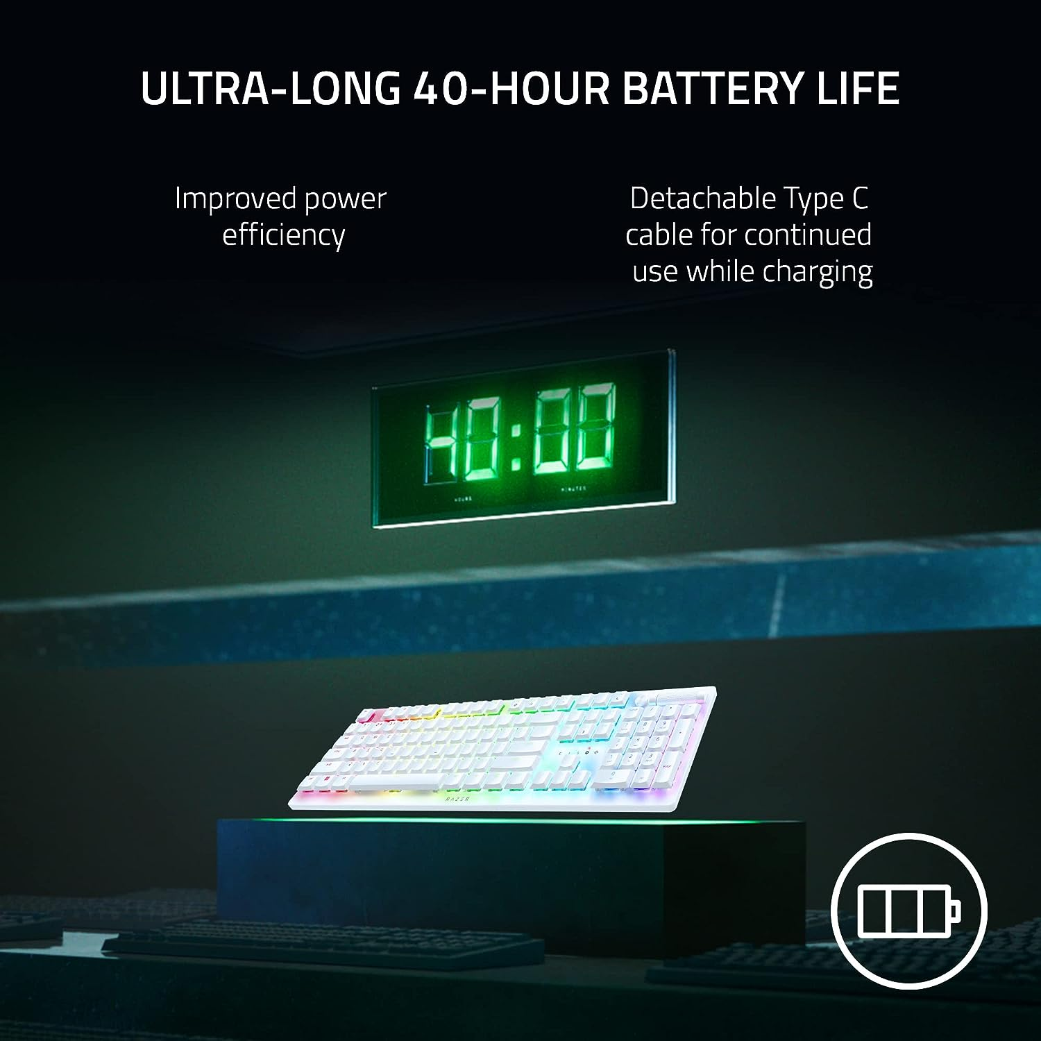 📌 CONNECTIVITY – Connect via Razer™ HyperSpeed Wireless (2.4 Ghz), Bluetooth, or Type-C