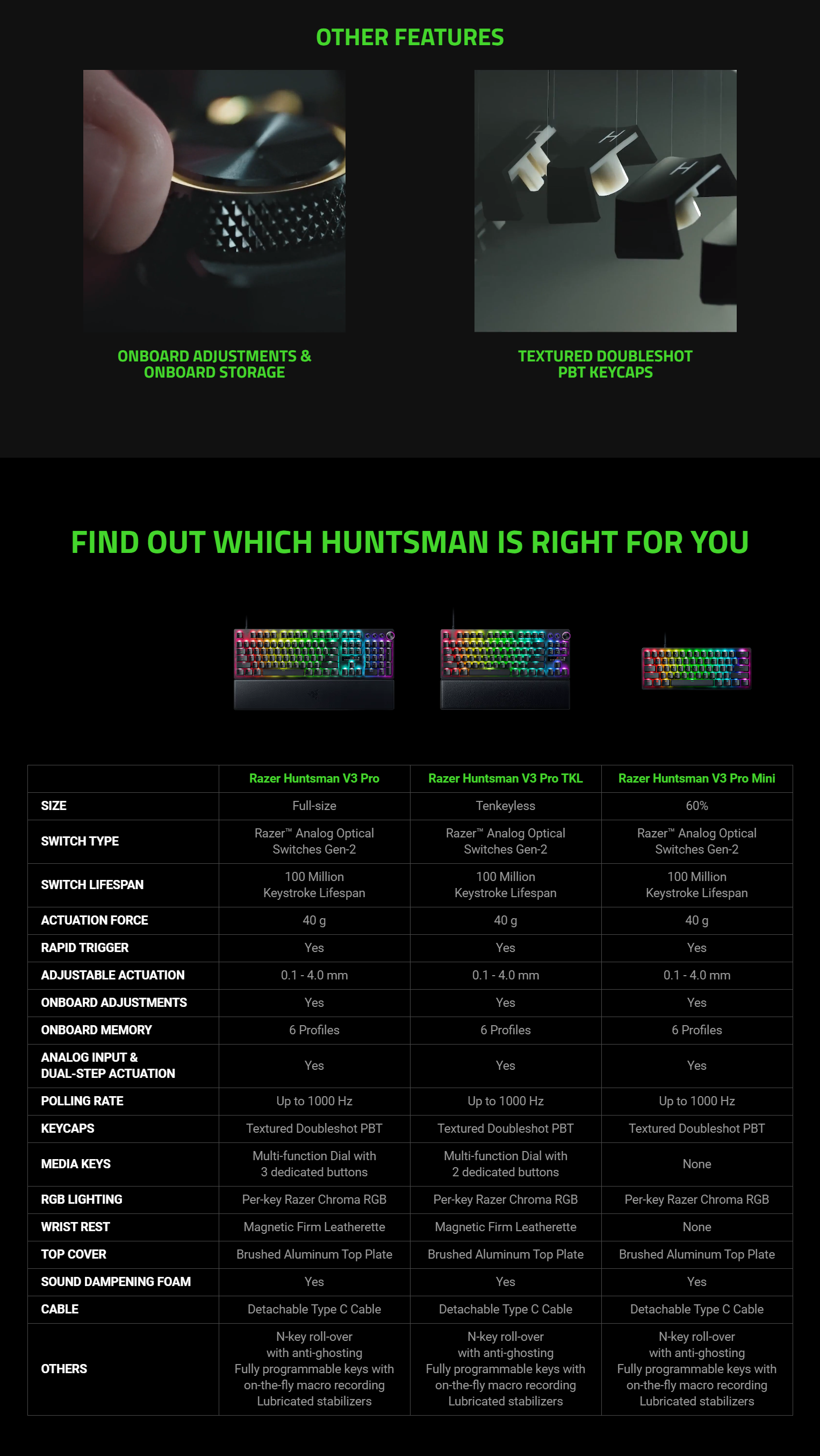 Reach your full esports potential with the Razer Huntsman V3 Pro line—analog optical keyboards made for the pro in you. From ultra-responsive inputs and adjustable actuation to quick onboard adjustments and onboard storage, be tournament ready with a form factor that best suits your playstyle.