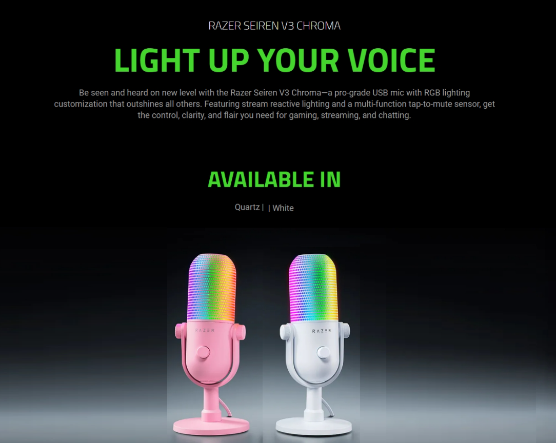 🌟🌟Razer Seiren V3 Chroma – Quartz ไมโครโฟนสตรีมมิ่ง RGB พร้อมระบบเซ็นเซอร์ปิดเสียงมัลติฟังก์ชั่น ของแท้🌟🌟