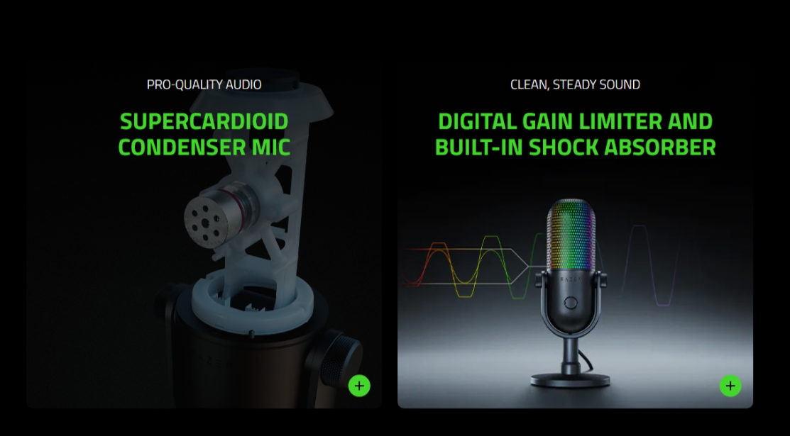 Be seen and heard on new level with the Razer Seiren V3 Chroma—a pro-grade USB mic with RGB lighting customization that outshines all others. Featuring stream reactive lighting and a multi-function tap-to-mute sensor, get the control, clarity, and flair you need for gaming, streaming, and chatting.