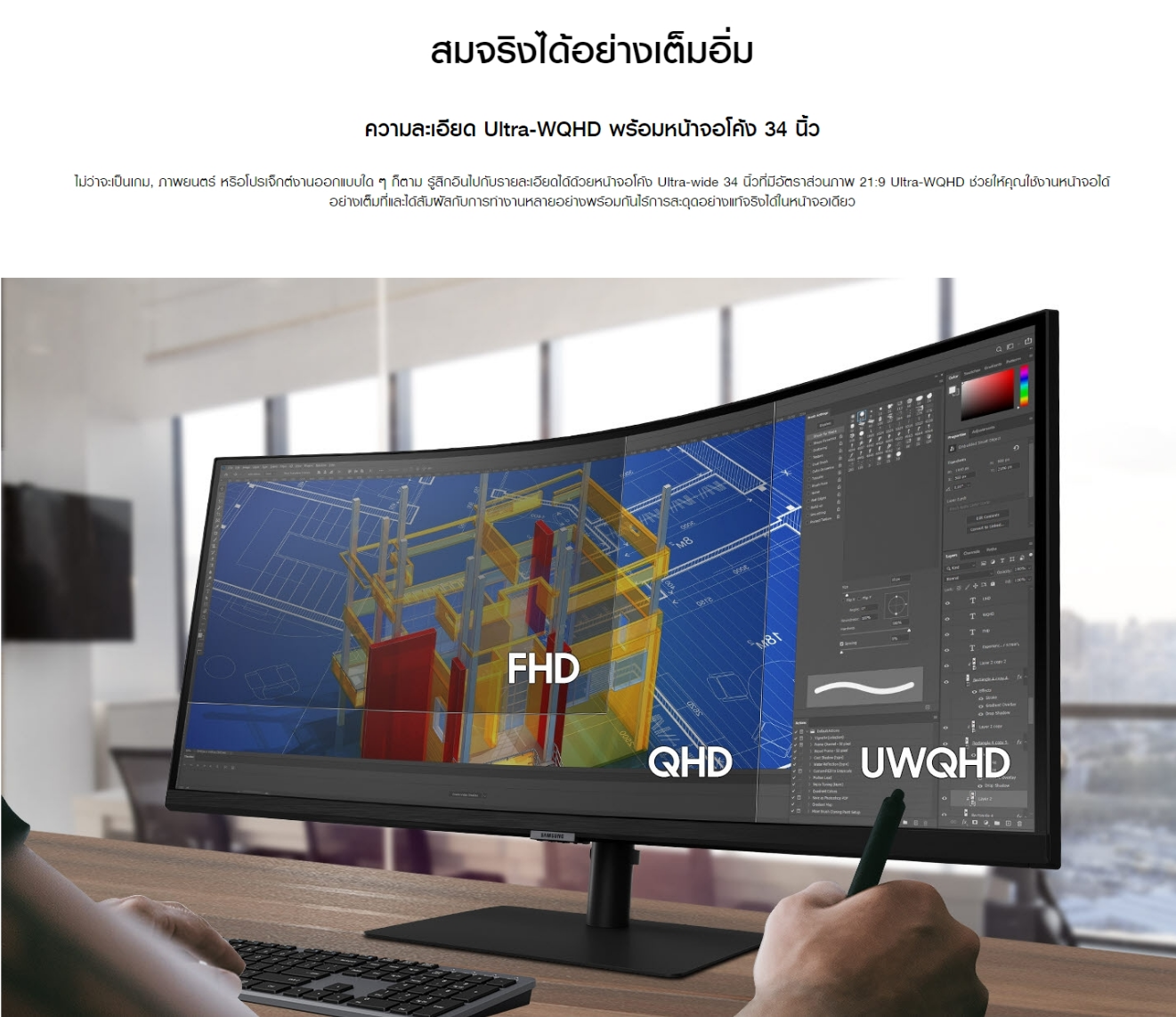 ขนาดหน้าจอ: 86.4 ซม. (34″)