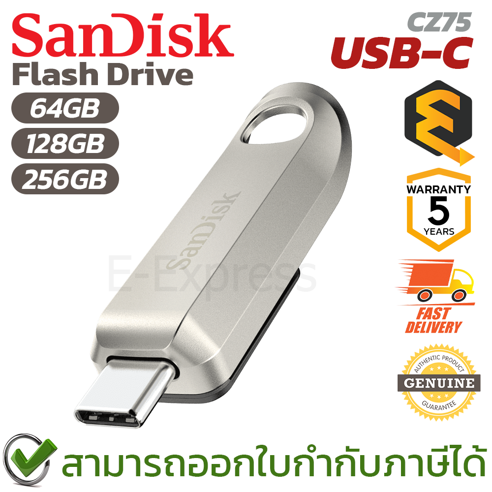 Sandisk USB-C Flash Drive [CZ75] แฟลชไดร์ฟ [64gb, 128gb, 256gb] ของแท้ ประกันศูนย์ 5ปี