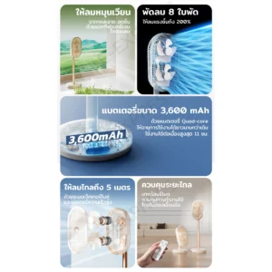 ✅ ให้ลมแรง 3.6 เมตร/วินาที ให้ลมได้ไกลถึง 5 เมตร