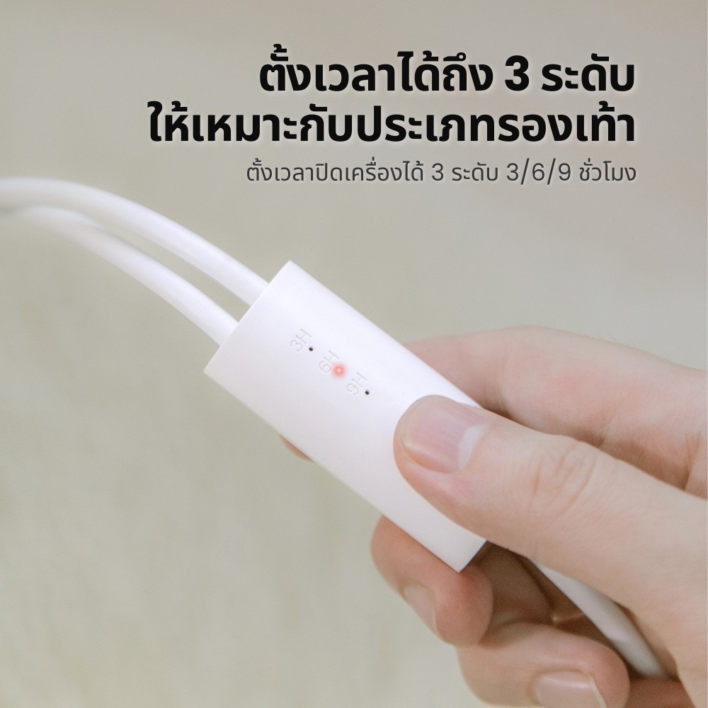 ✅ ใช้งานโดยการสอดเข้าไปในรองเท้า และเสียบปลั๊กเพื่อตั้งเวลาใช้งาน
