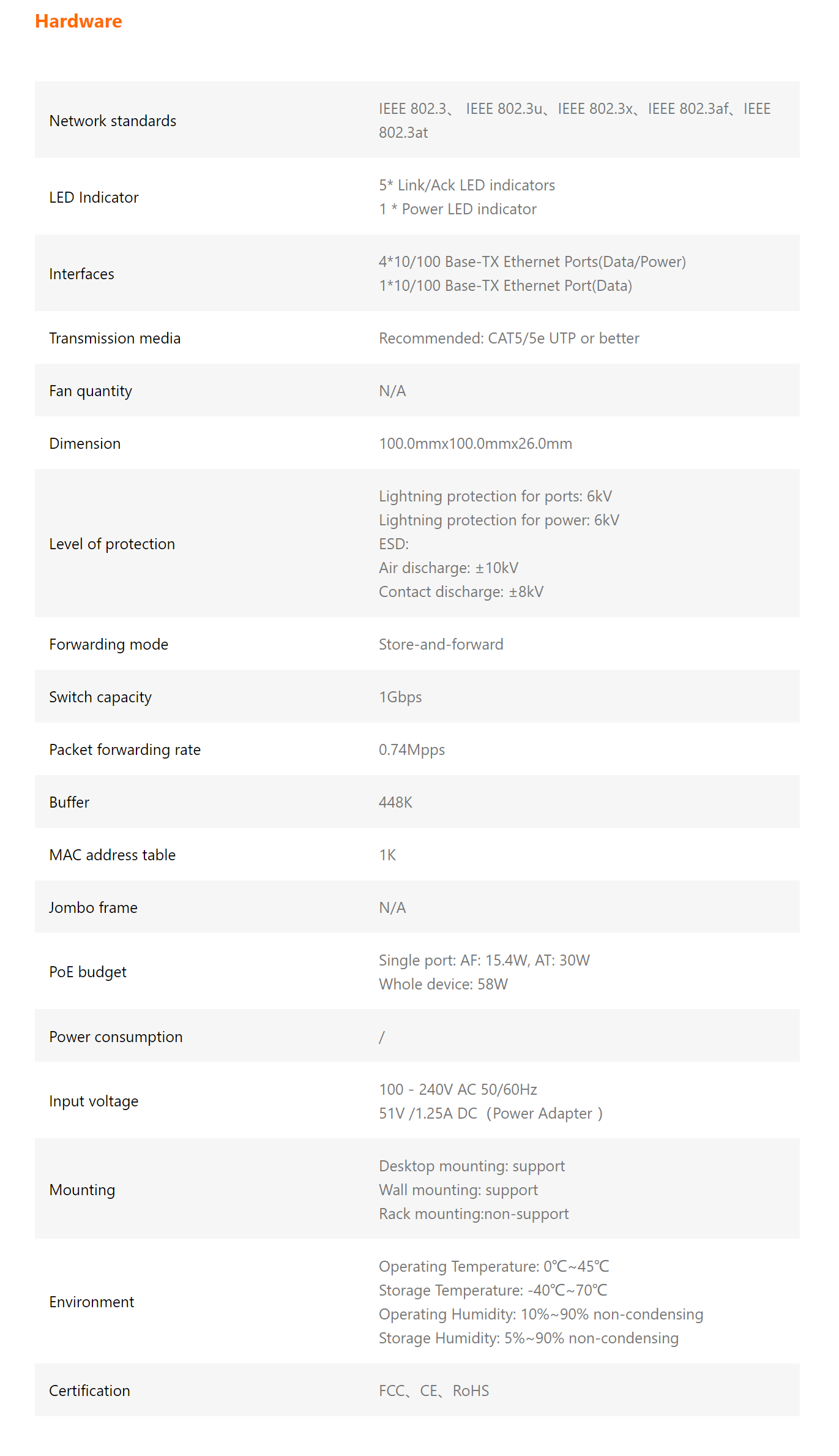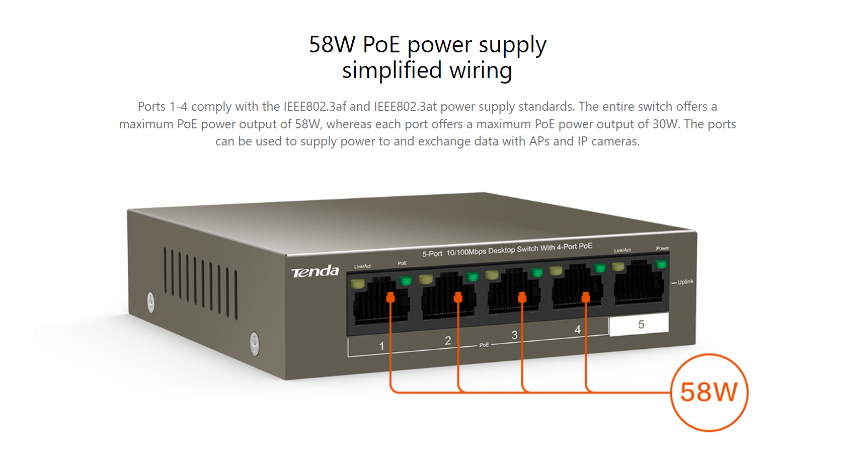 TEF1105P-4-63W 5-Port 10/100Mbps Desktop Switch with 4-Port PoE