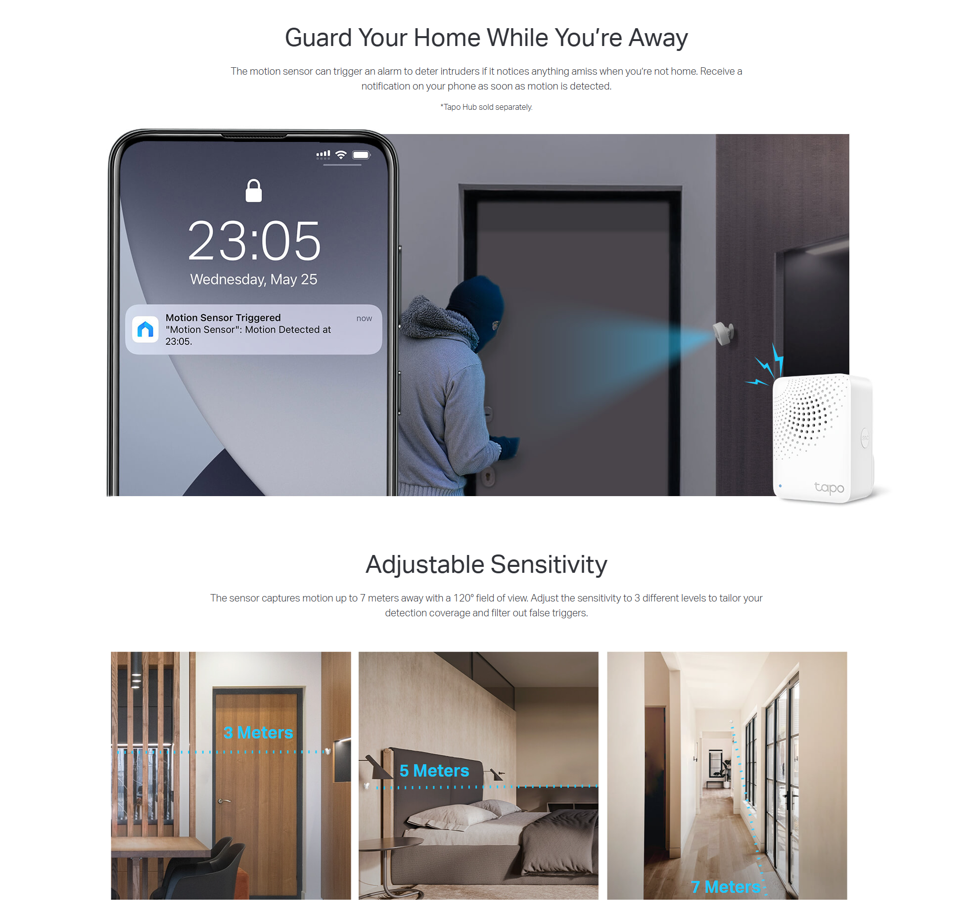 ✅ ตรวจจับการเคลื่อนไหวได้ไกลถึง 7 เมตร มุมในการตรวจจับ 120 องศา