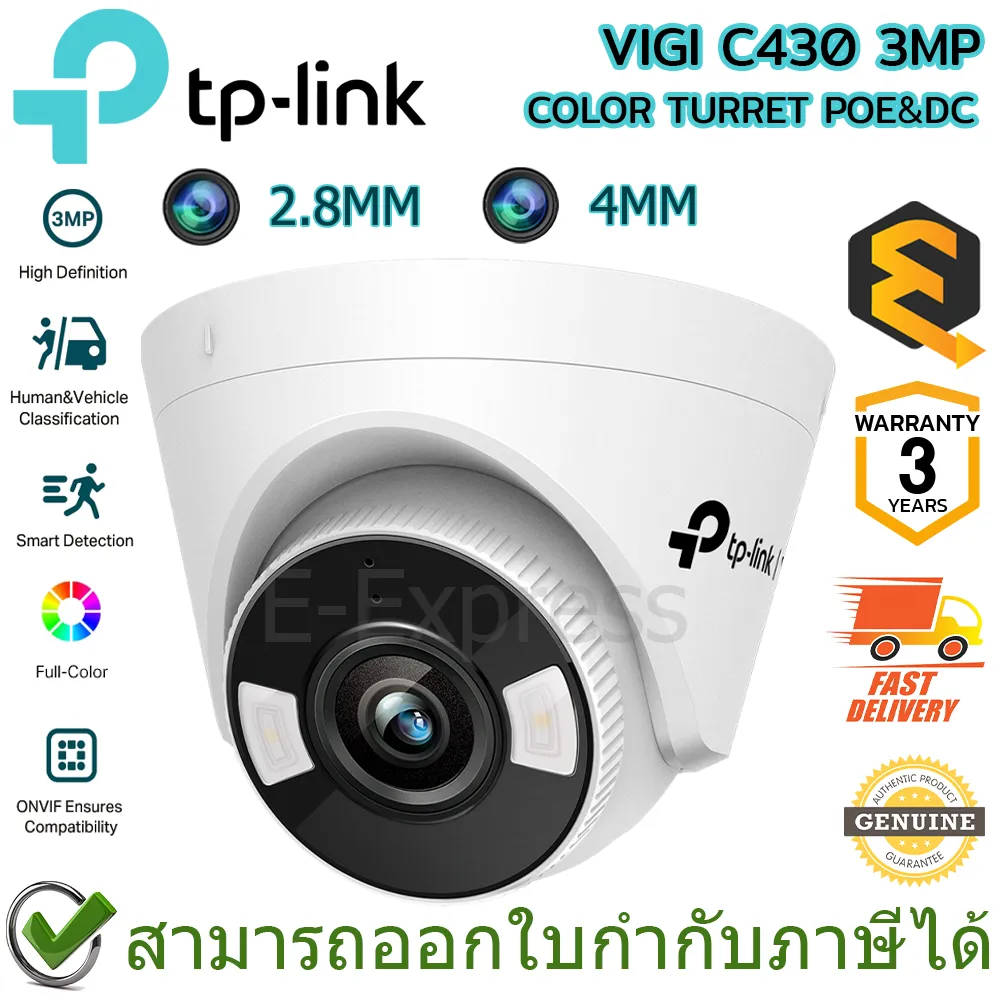 ✨✨TP-Link VIGI C430 3MP COLOR TURRET POE&DC กล้องวงจรปิดมีเลนส์ให้เลือก 2.8MM และ 4MM ของแท้ ✨✨