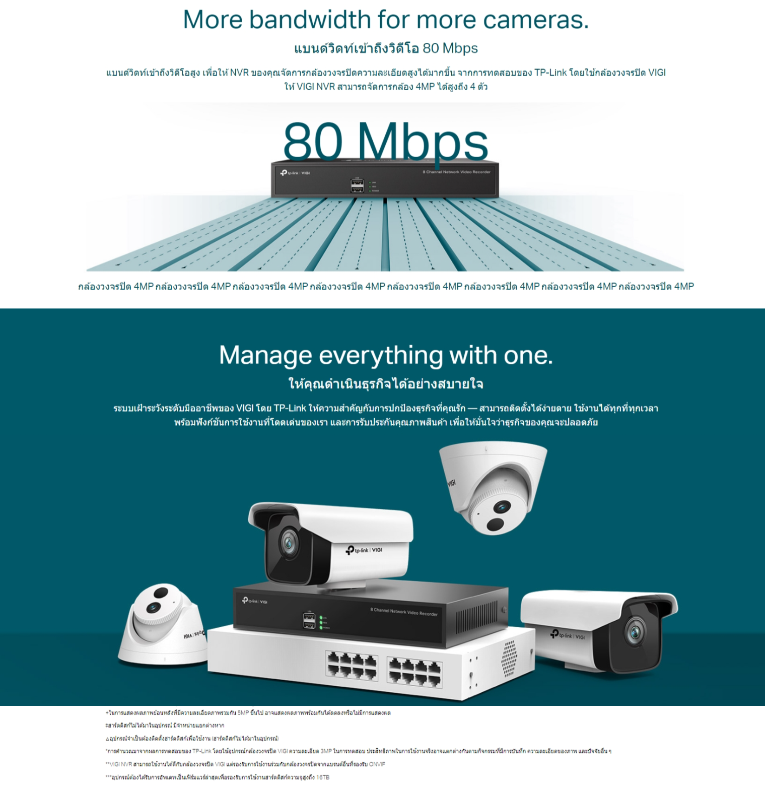 ✅ 80 Mbps Video Access Bandwidth: แบนด์วิดท์เข้าถึงวิดีโอสูง เพื่อให้ NVR ของคุณจัดการกล้องวงจรปิดความละเอียดสูงได้มากขึ้น จากการทดสอบของ TP-Link โดยใช้กล้องวงจรปิด VIGI ให้ VIGI NVR สามารถจัดการกล้อง 4MP ได้สูงถึง 4 ตัว