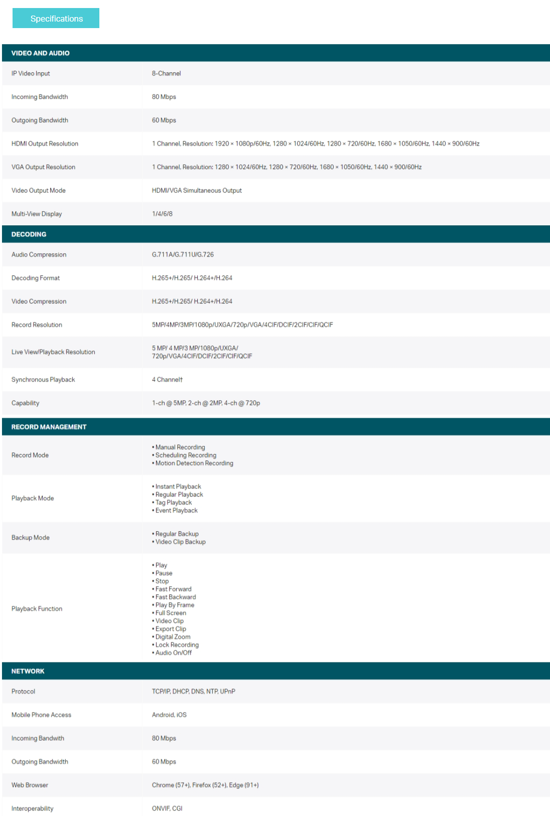 🚩Capability 1-ch @ 5MP, 2-ch @ 2MP, 4-ch @ 720p