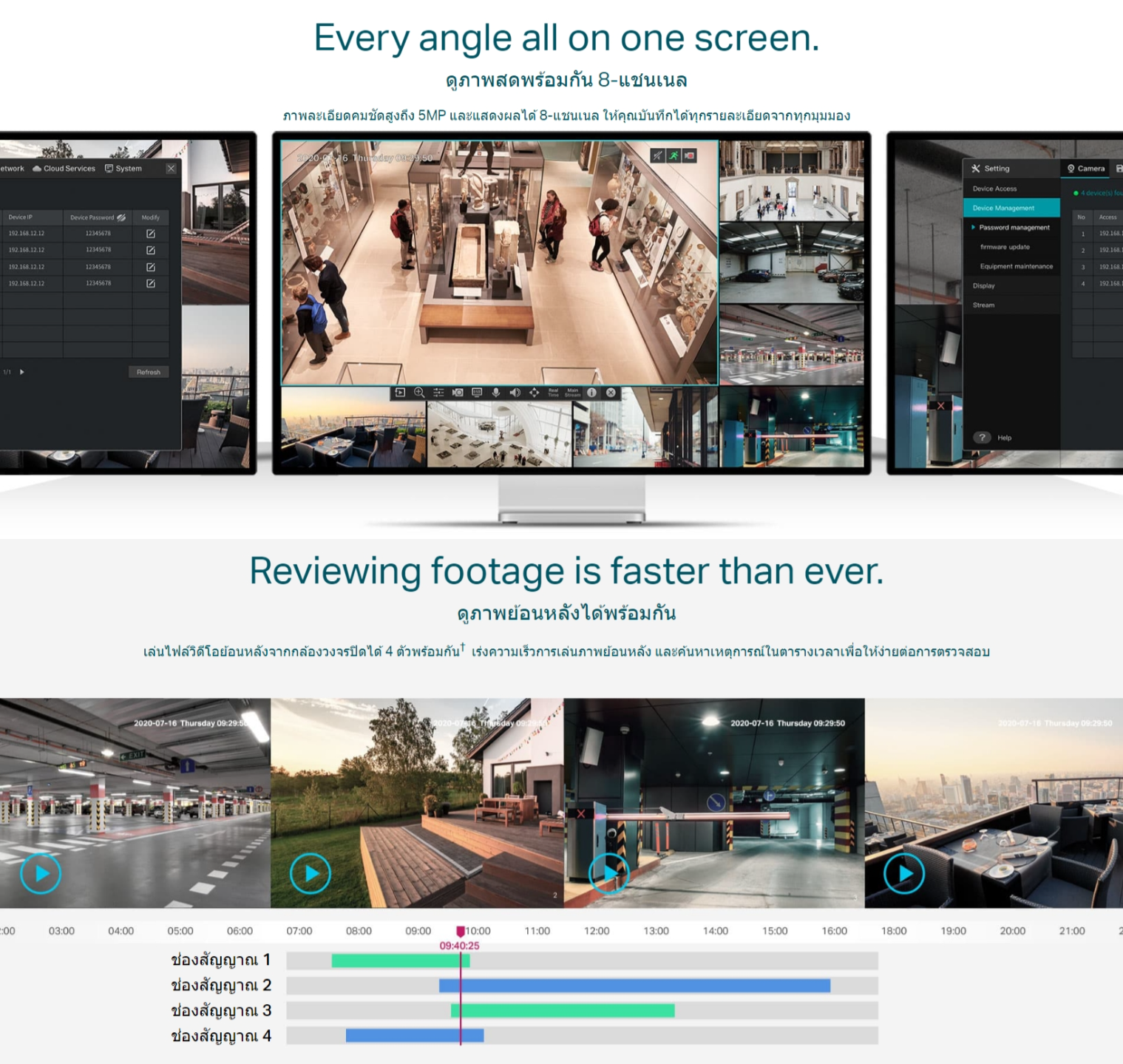 ✅ Simultaneous Playback: เล่นไฟล์วิดีโอย้อนหลังจากกล้องวงจรปิดได้ 4 ตัวพร้อมกัน† เร่งความเร็วการเล่นภาพย้อนหลัง และค้นหาเหตุการณ์ในตารางเวลาเพื่อให้ง่ายต่อการตรวจสอบ