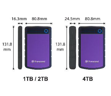 Transcend’s StoreJet 25H3 ruggedized portable hard drive combines supreme shock-resistant qualities with the USB 3.1 Gen 1 interface, allowing for ultra-fast file transfers and the highest level of anti-shock protection. With up to 4TB storage capacity, the StoreJet 25H3 eliminates all fears of running out of storage.