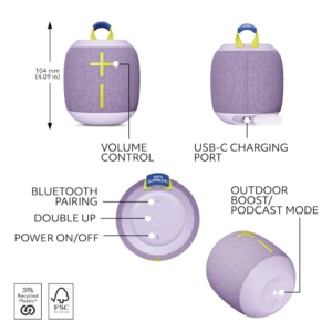 🔹 Pairing: Connect up to two source devices at the same time, Wirelessly play (stream) to 2 WONDERBOOM 4 speakers from one source