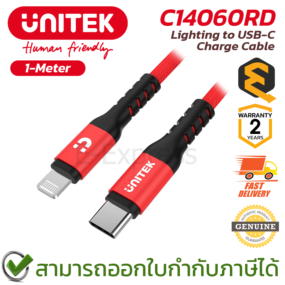 UNITEK Charge Cable Lighting to USB-C [C14060RD] สายเคเบิ้ล สายชาร์จ ของแท้ ประกันศูนย์ 2ปี
